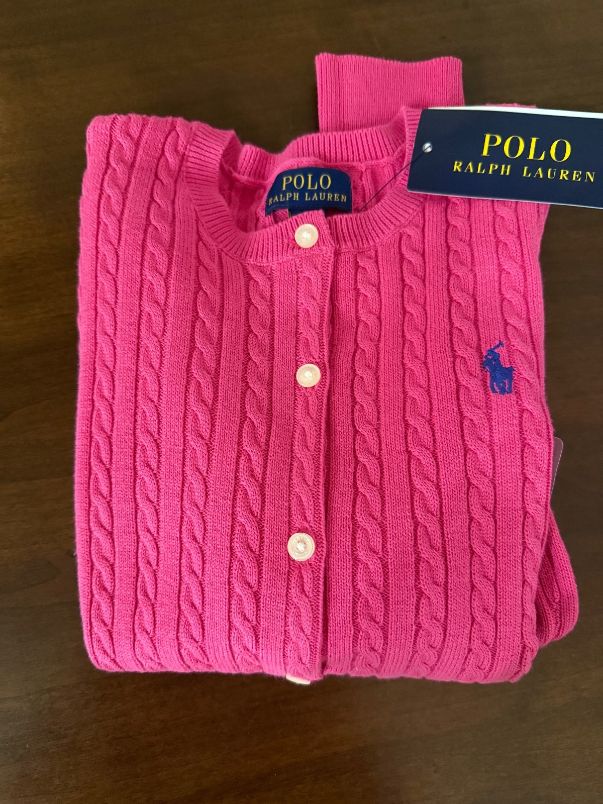 как выглядит GIRLS POLO RALPH LAUREN MINI CABLE KNIT COTTON CARDIGAN:MODERN PINK:MEDIUM::NWT фото