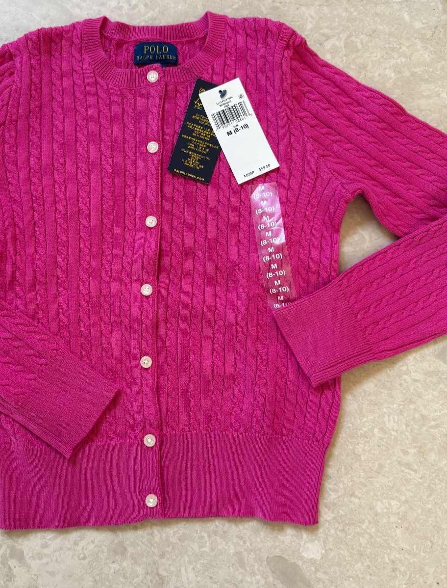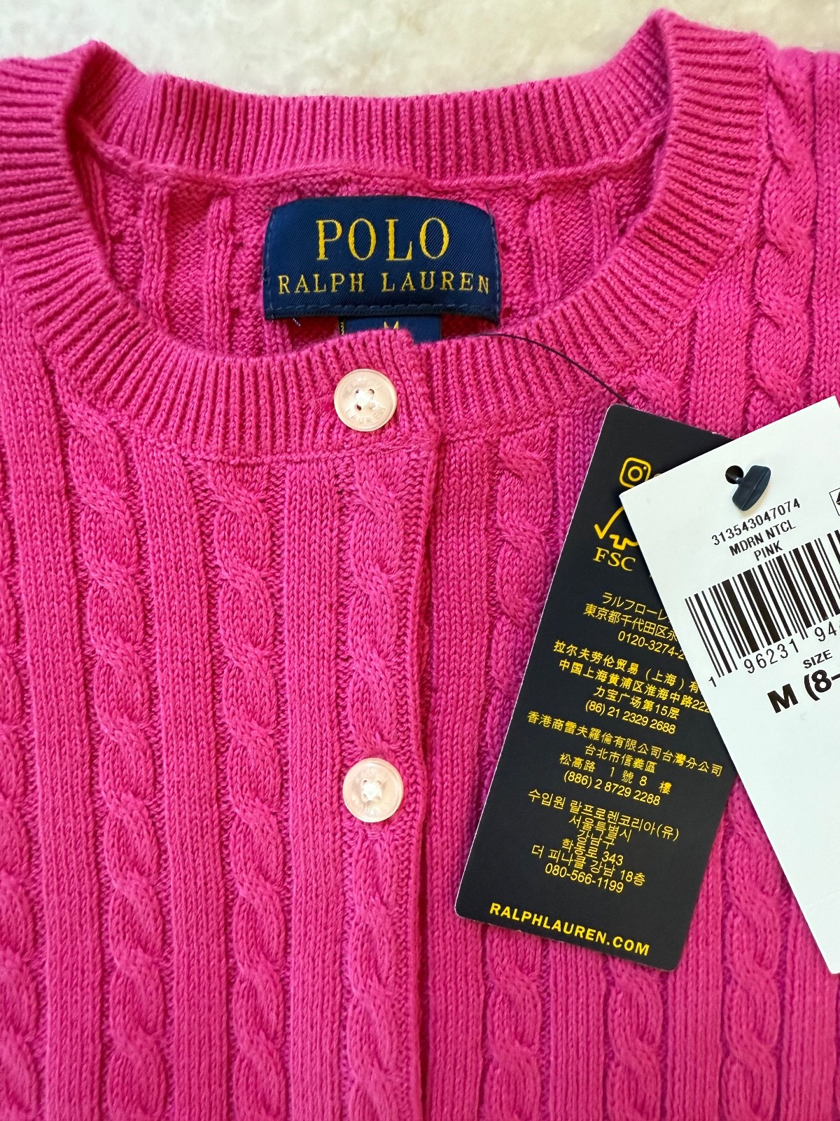 GIRLS POLO RALPH LAUREN MINI CABLE KNIT COTTON CARDIGAN:MODERN PINK:MEDIUM::NWT
