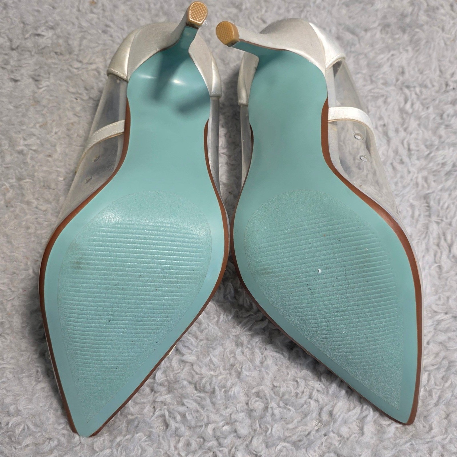 как выглядит Betsey Johnson I DO Bridal Clear Pump Heels Wedding White Satin Sz 7 NEW фото