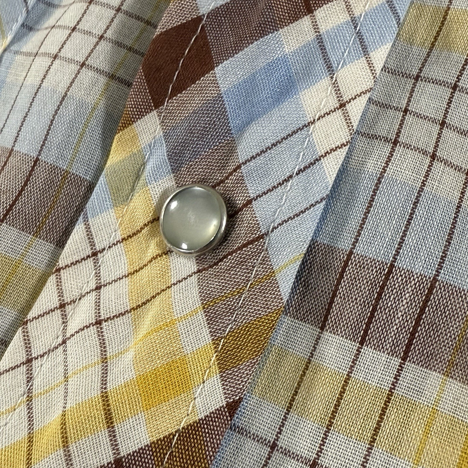 как выглядит Vintage Lee Shirt Men s Medium 70s Pearl Snap Long Tails Plaid Western Button-Up фото