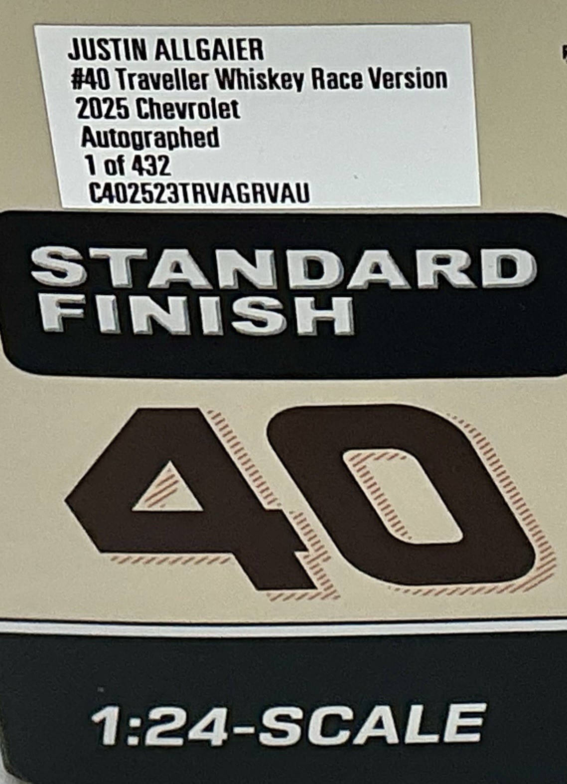 как выглядит 2025 1/24 40 Justin Allgaier Traveller Whiskey  Autographed - W/ Sound Base фото