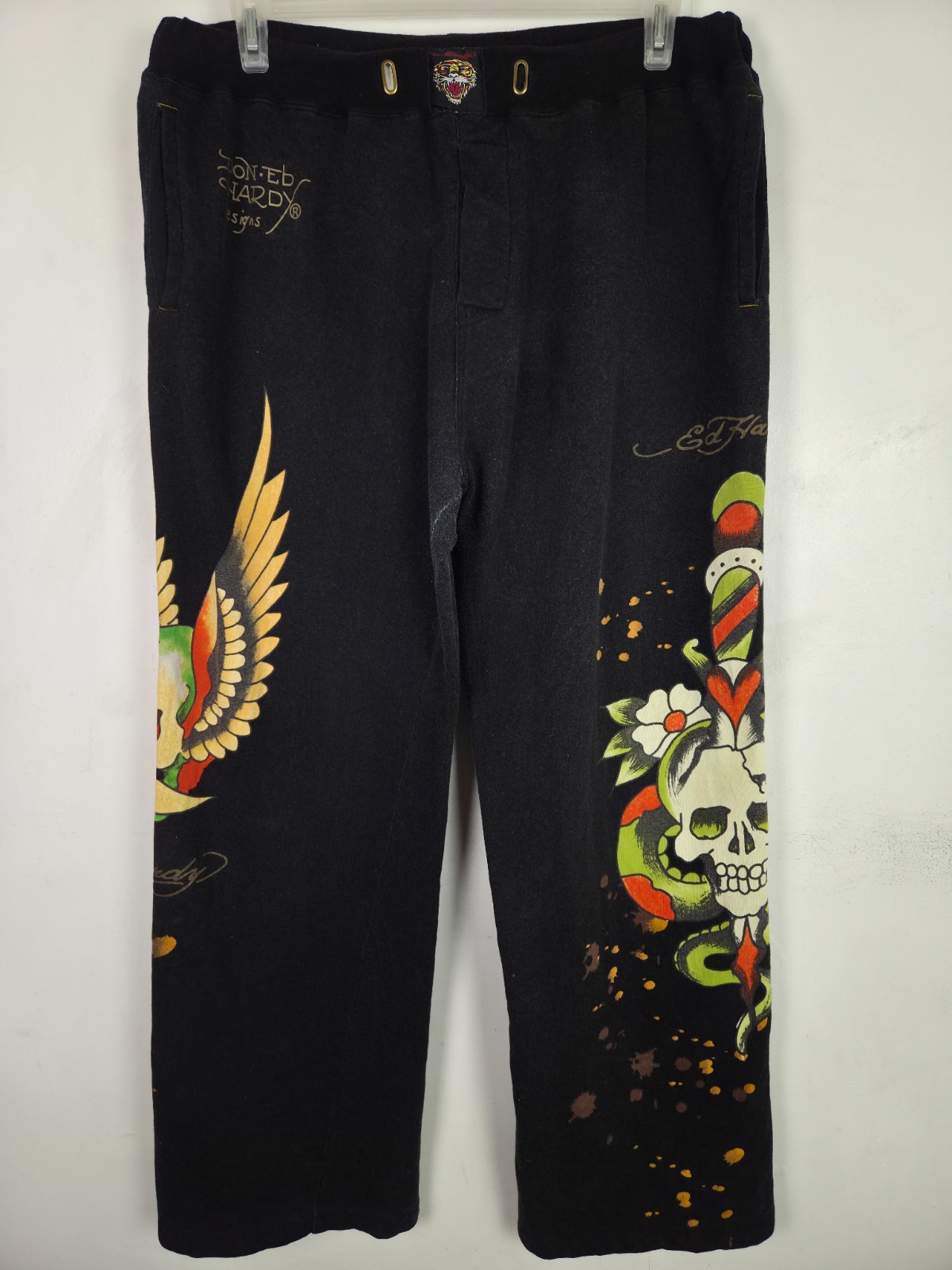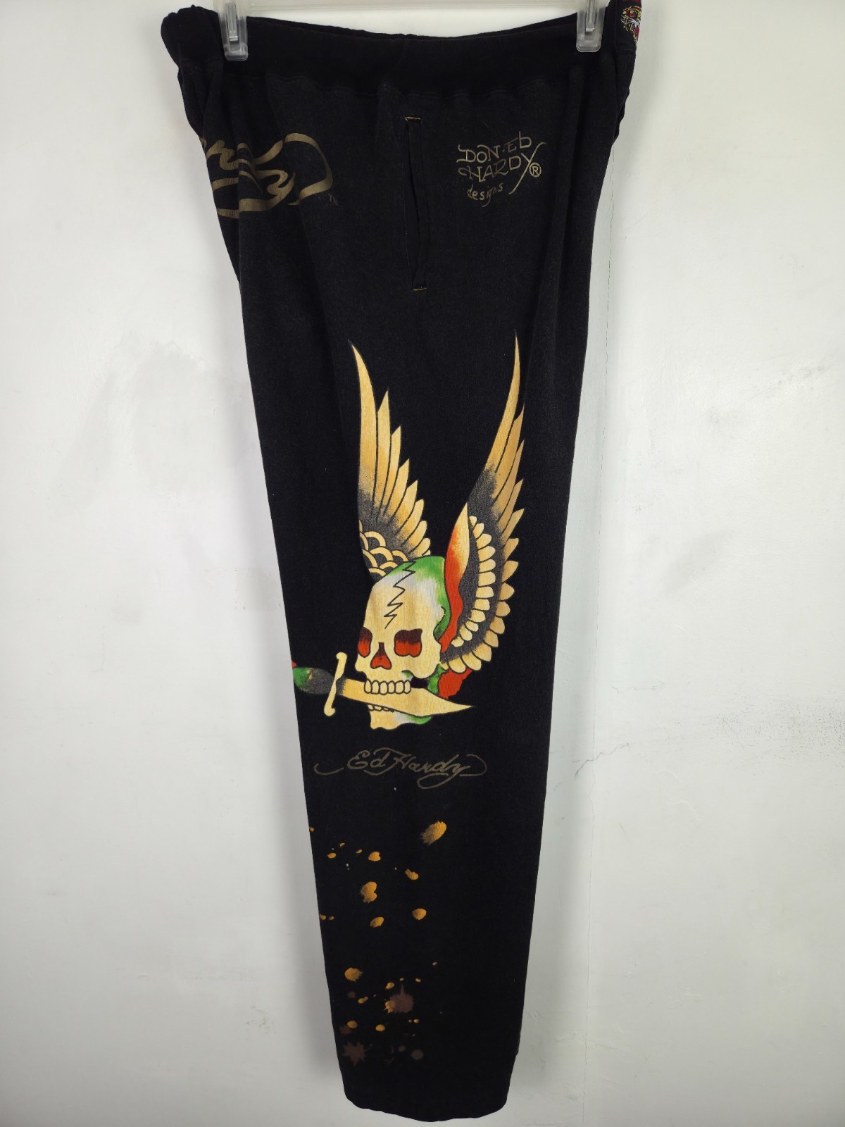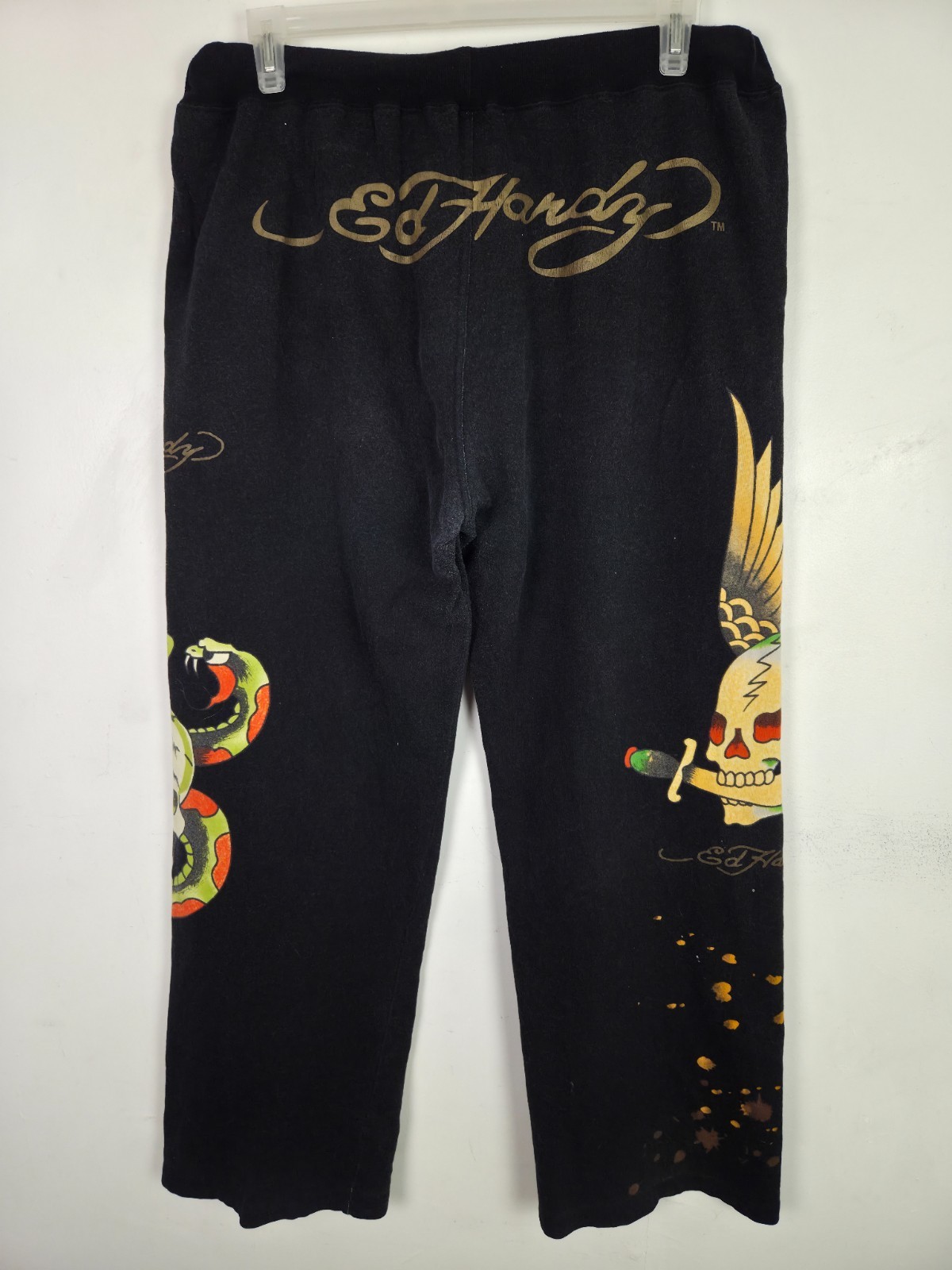 как выглядит Ed Hardy Sweatpants Women Large Black Y2K Wide Leg Skull Snake Wings Streetwear фото