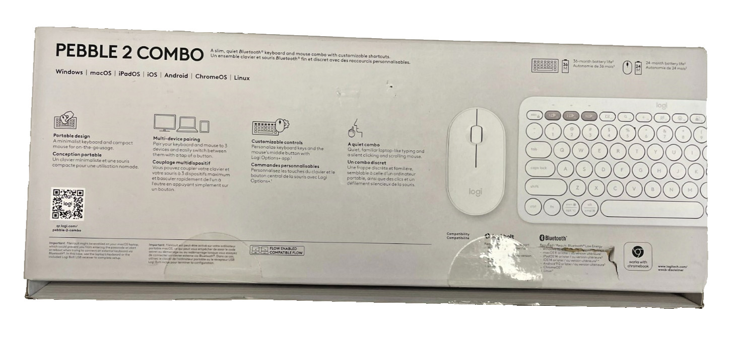Logitech Pebble 2 Combo Wireless Keyboard Mouse - Tonal White - OPEN BOX