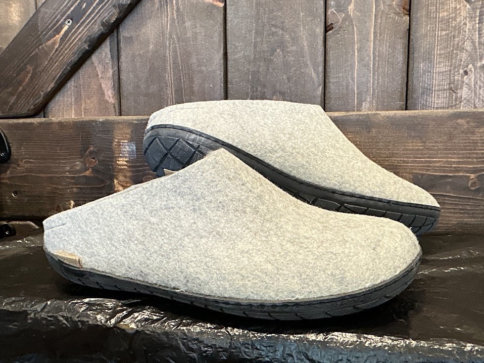 Glerups Slip-On Gray Wool Slipper With Black Rubber Bottom - EU Size 42