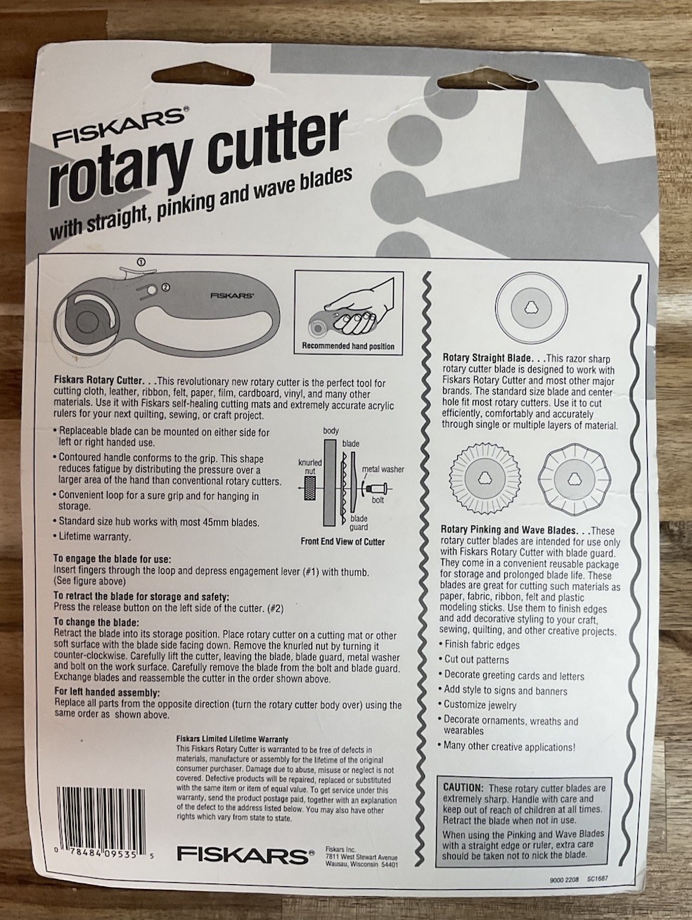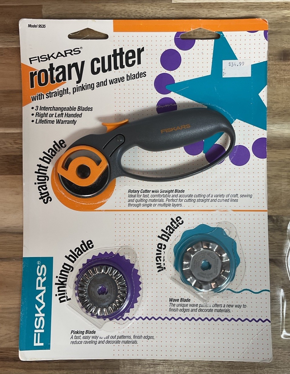 Fiskars Rotary Cutter Straight Pinking and Wave Blades USA