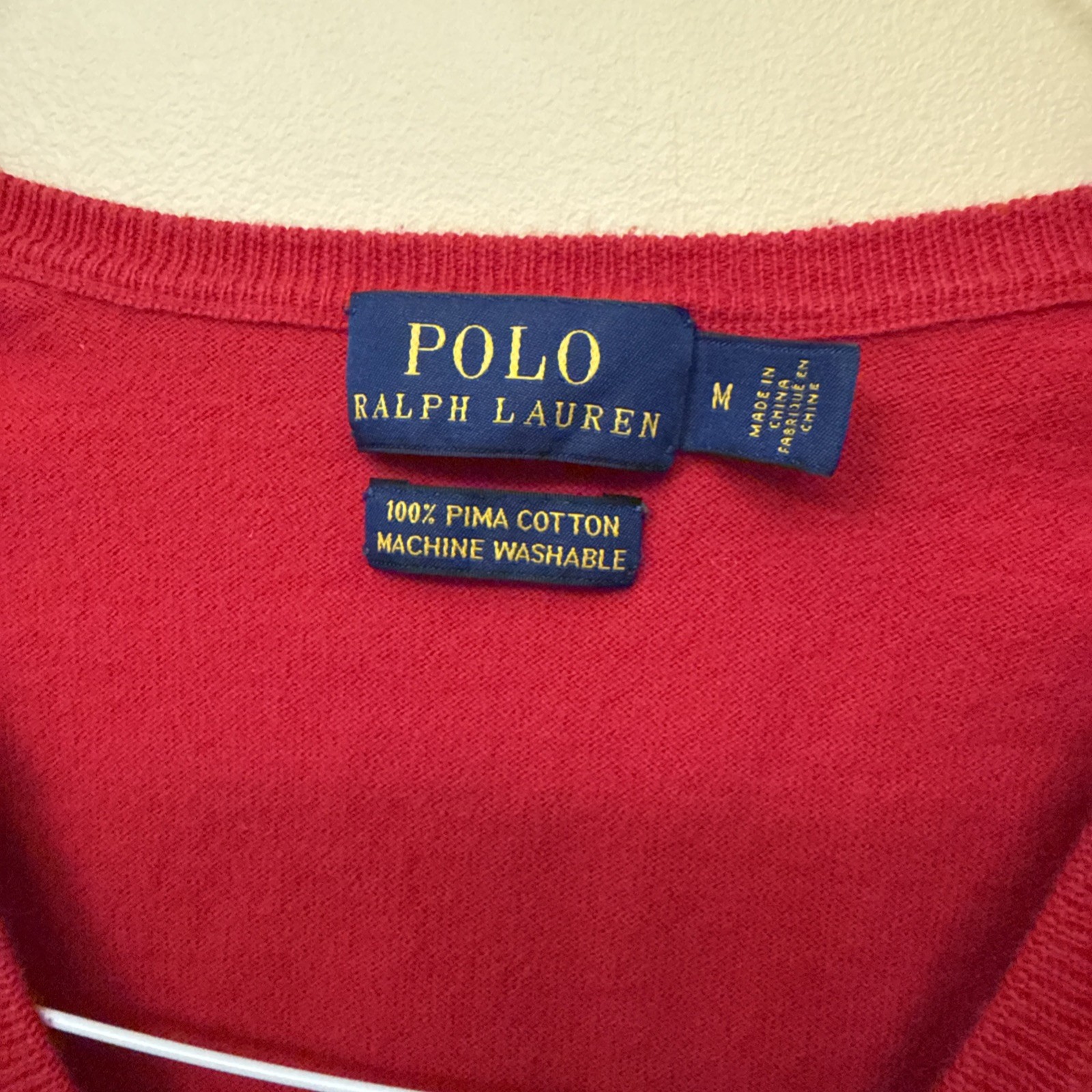 как выглядит Polo Ralph Lauren Red Pima Cotton V-Neck Jumper The size is Medium фото