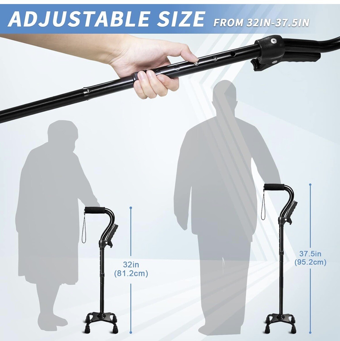 Adjustable Walking Cane for Men Women with 4-Pronged Base For Extra Stability
