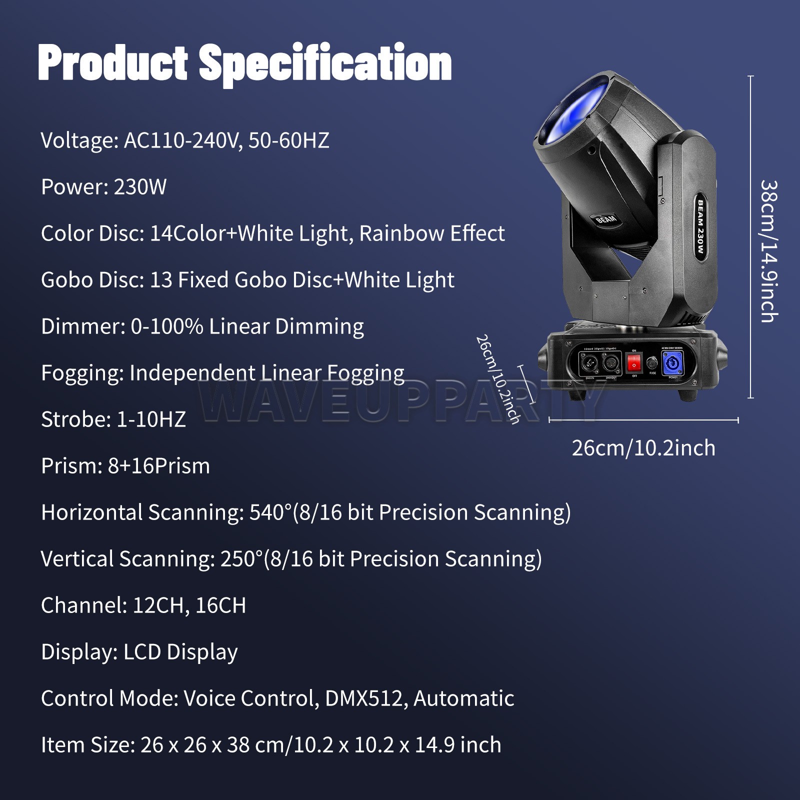 Control: DMX, Voice Control, Automatic