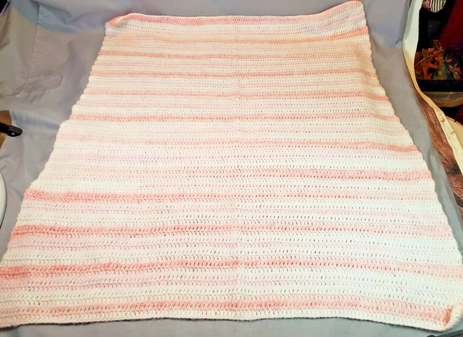 Hand Crocheted Baby Blanket Pink and White Afghan 37 x 30 in.
