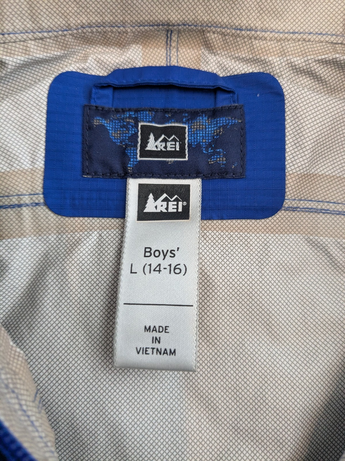 REI Blue Rainwall Full Zip Hooded Rain Jacket Windbreaker Boys Large 14-16