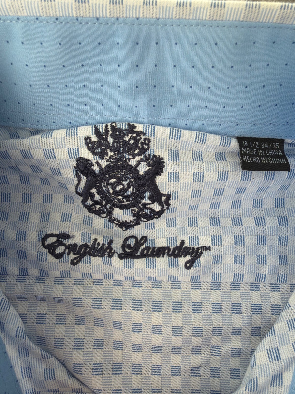 как выглядит English Laundry Mens Dress Shirt 16 1/2 34/35 Blue Pattern Cotton Long Sleeve фото