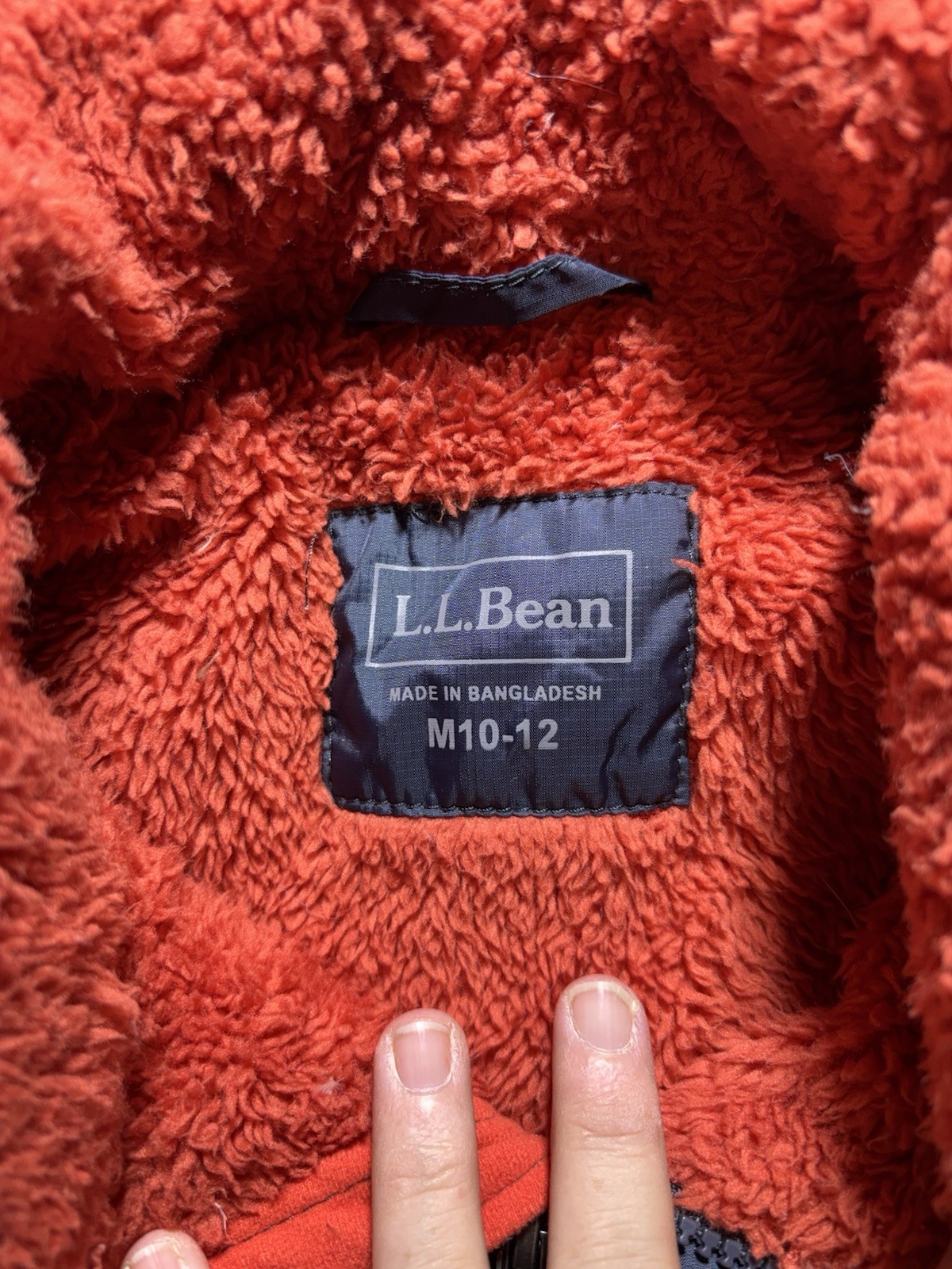 как выглядит LL Bean Navy Blue Down Puffer Vest Orange Fleece Lining Sz Medium Kids фото