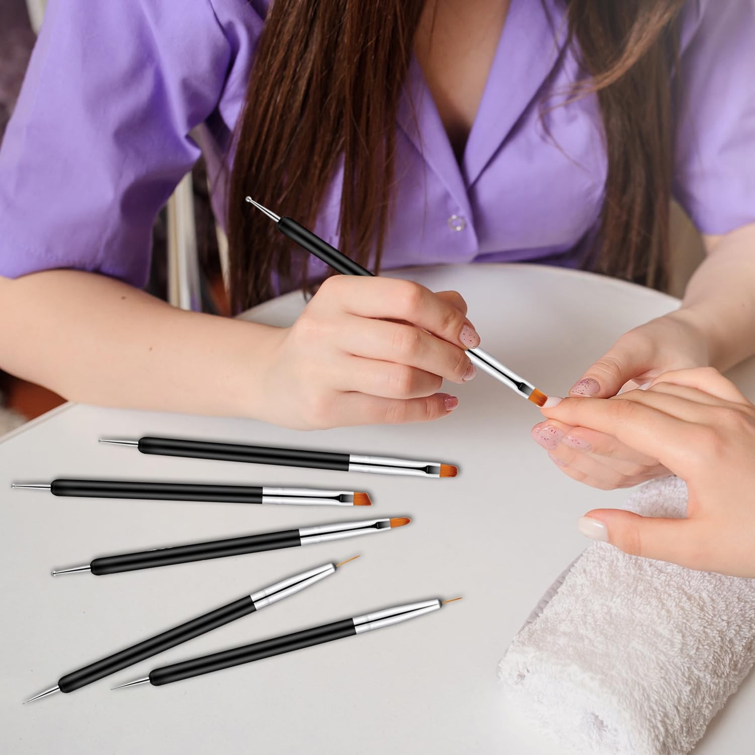 как выглядит CHEMAILON 11PCS Nail Art Brushes Dotting Tools,Double Ended Black фото