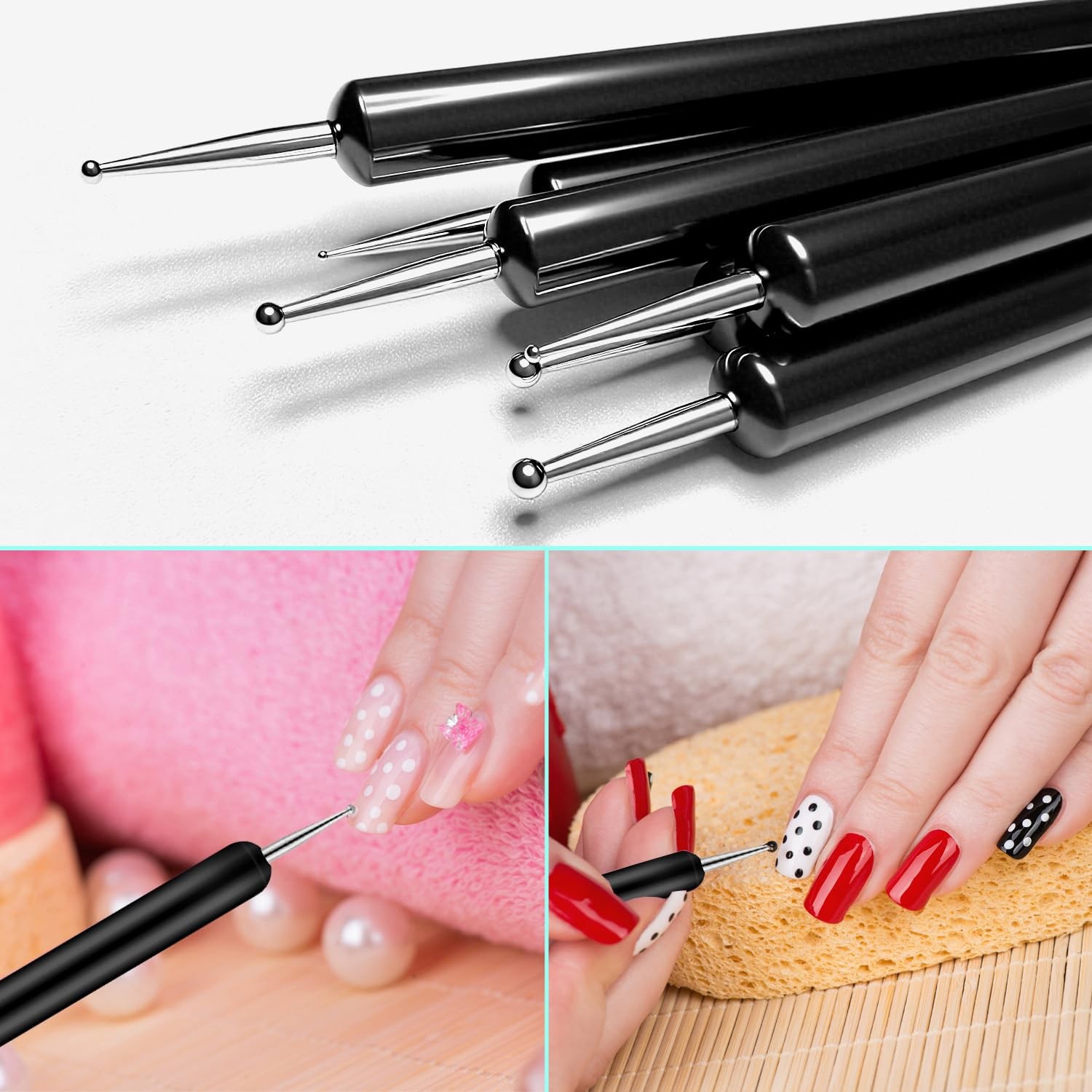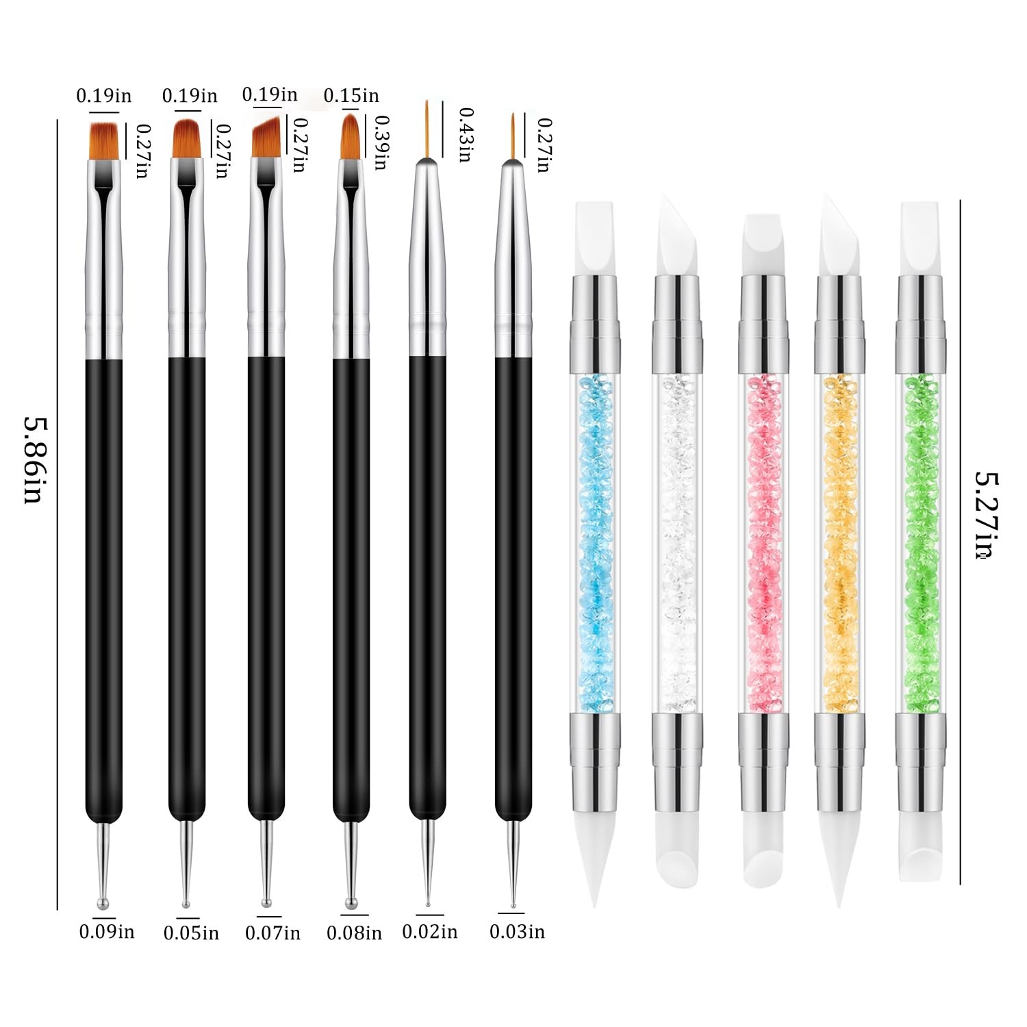 CHEMAILON 11PCS Nail Art Brushes Dotting Tools,Double Ended Black