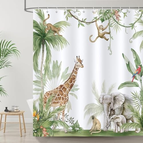 Animal Shower Curtain, Giraffe Elephant Monkey 72W x 72L Pack of 1 Jungle