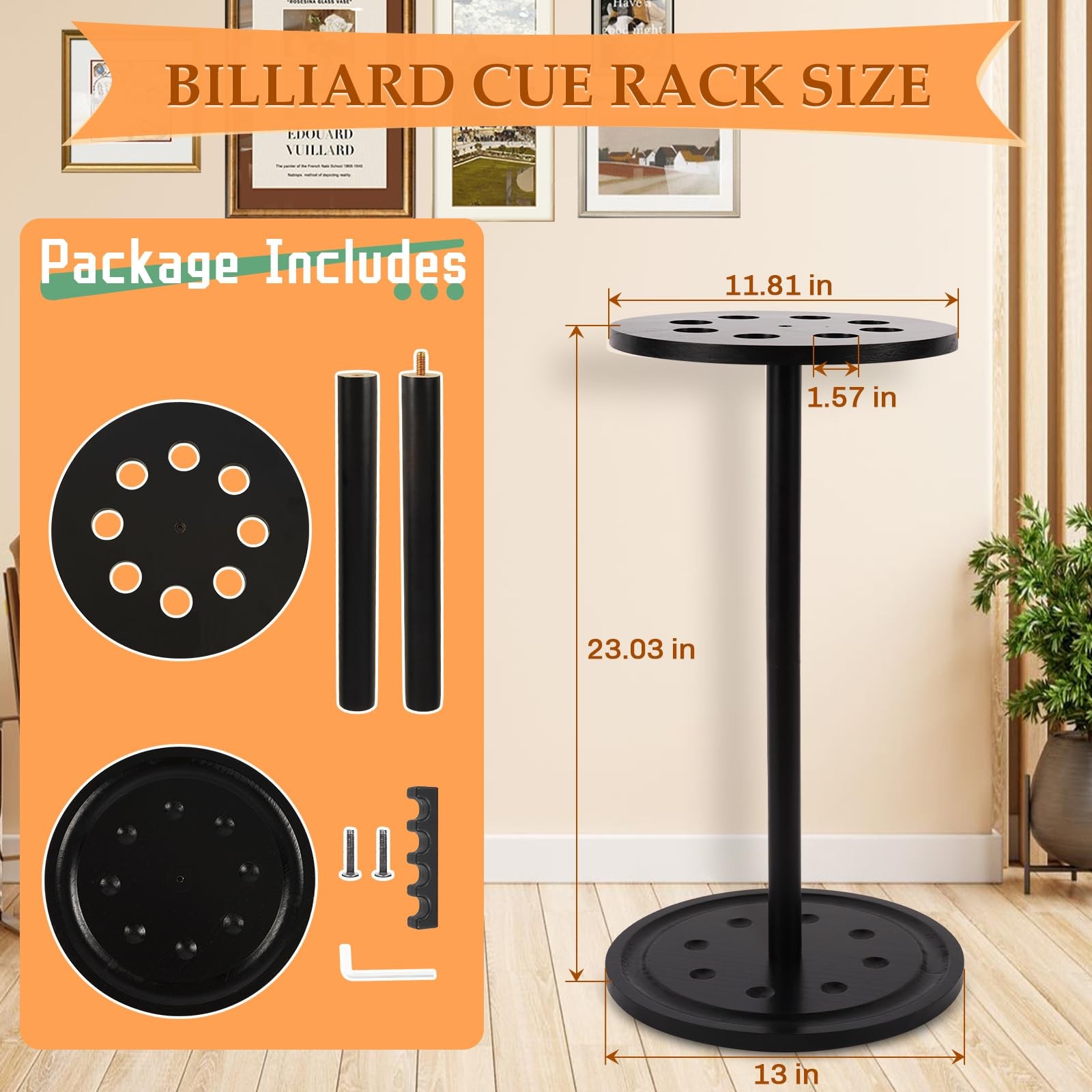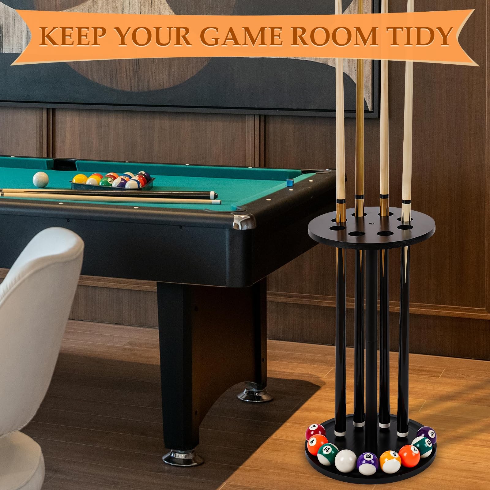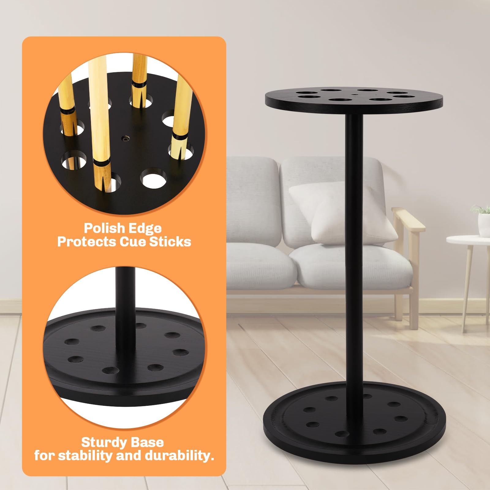 Pool Stick Holder Floor Stand - Round Billiard Cue Rack Table Black