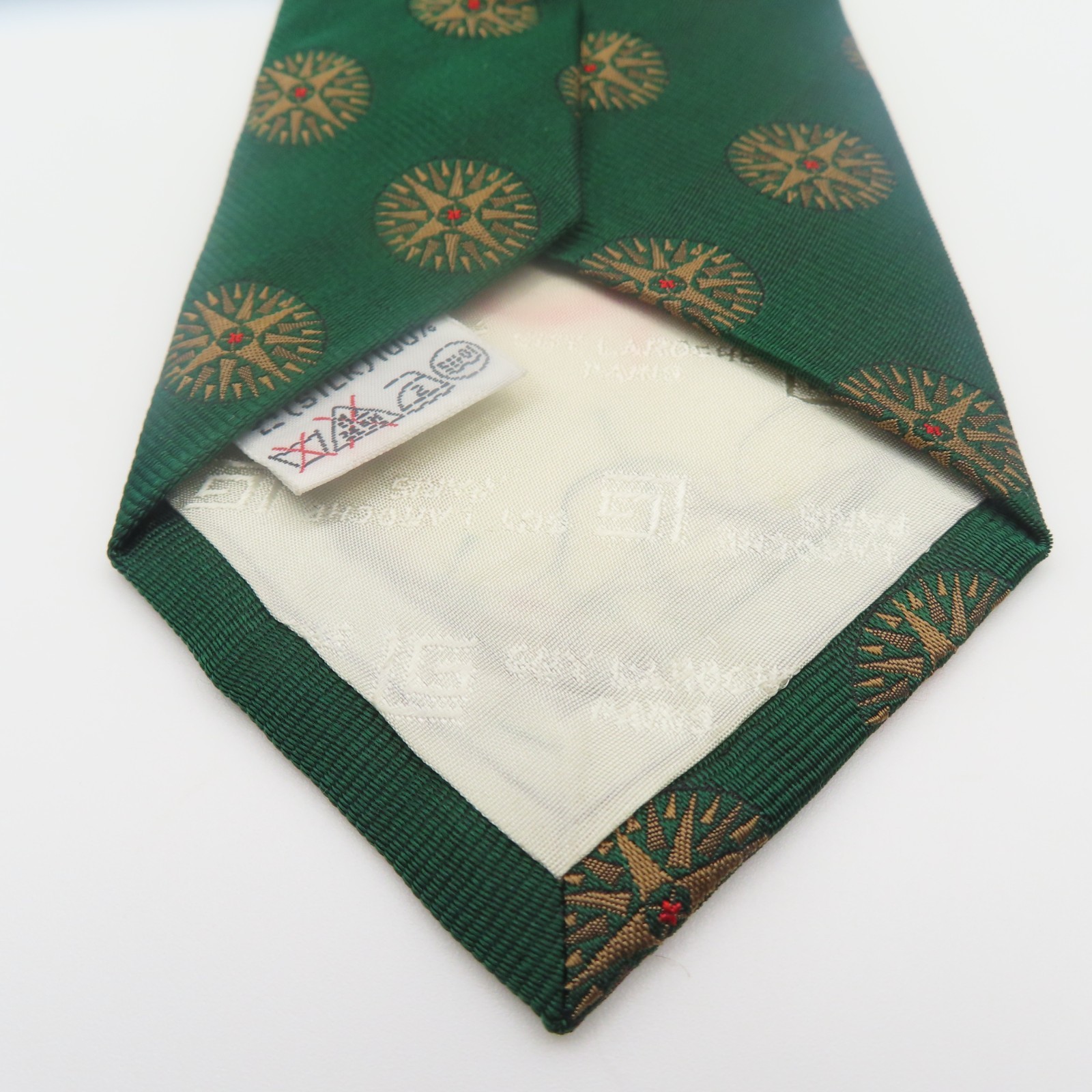 Guy Laroche Tie Silk Green Gold Red Polka Dot 3.25 Wide 54 Long Paris