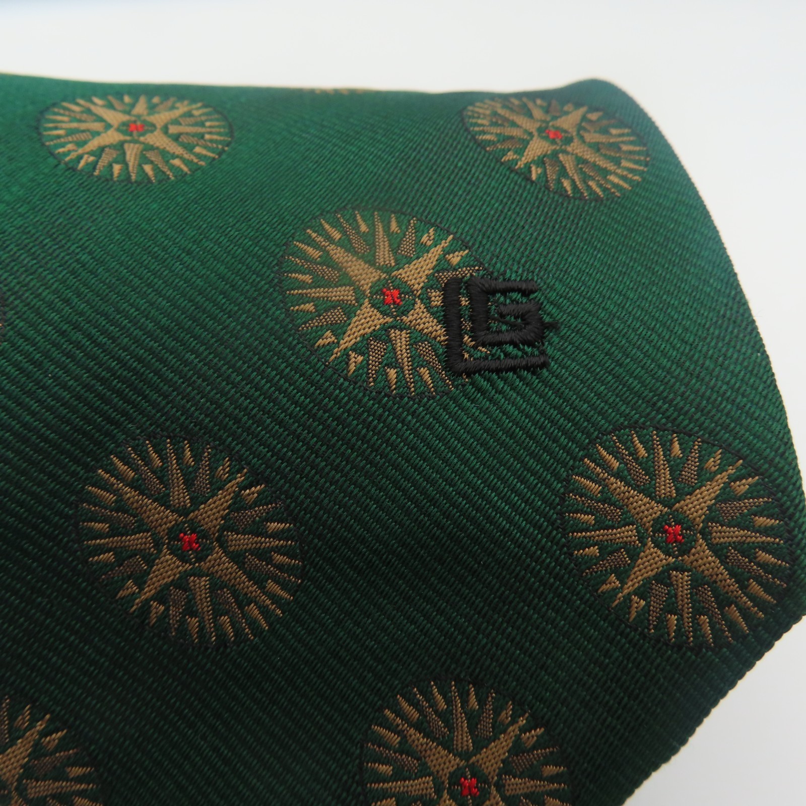 как выглядит Guy Laroche Tie Silk Green Gold Red Polka Dot 3.25" Wide 54" Long Paris фото