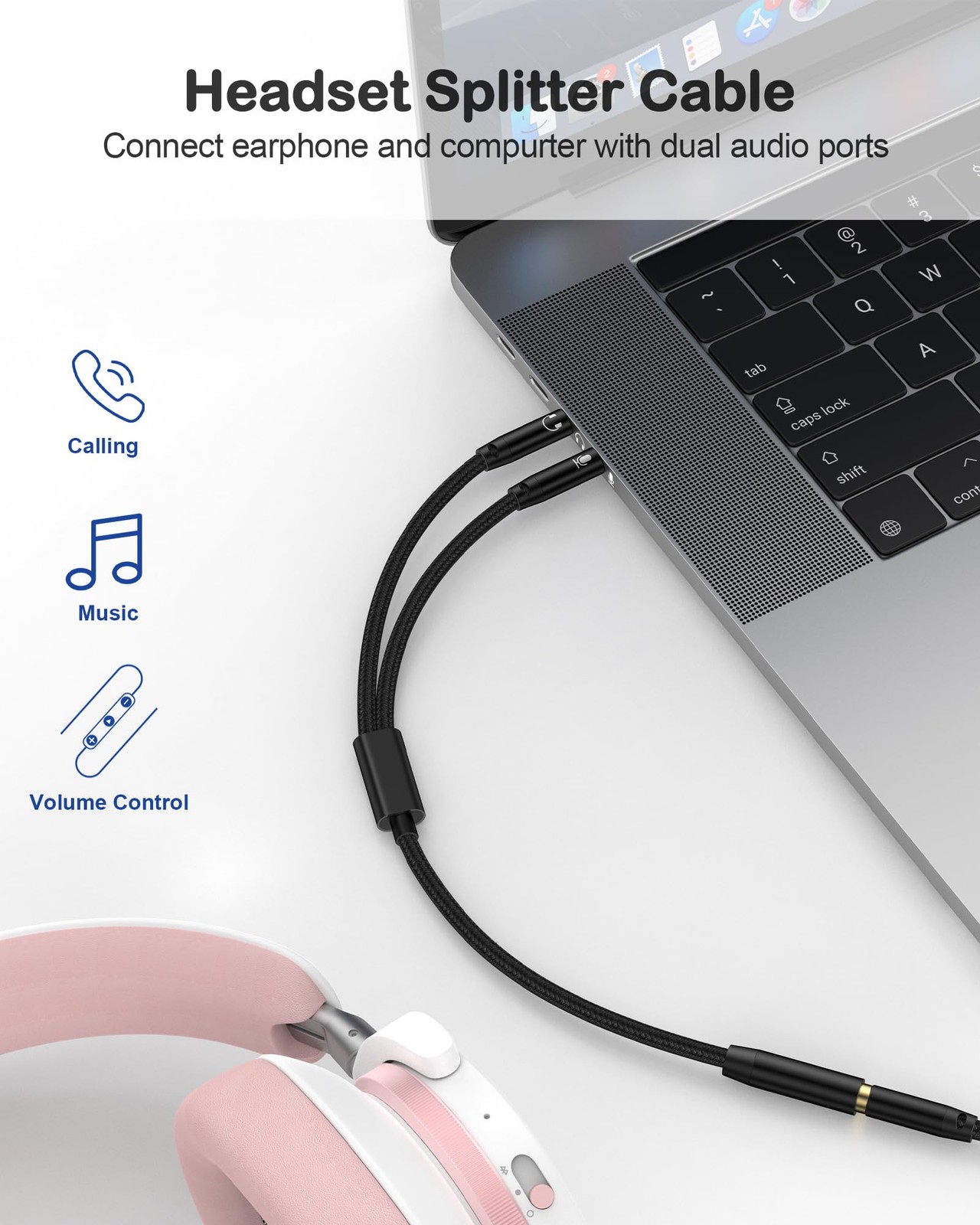 Headphone Mic Splitter for PC, Braided 3.5mm Female to 2 27 cm, Pure Black