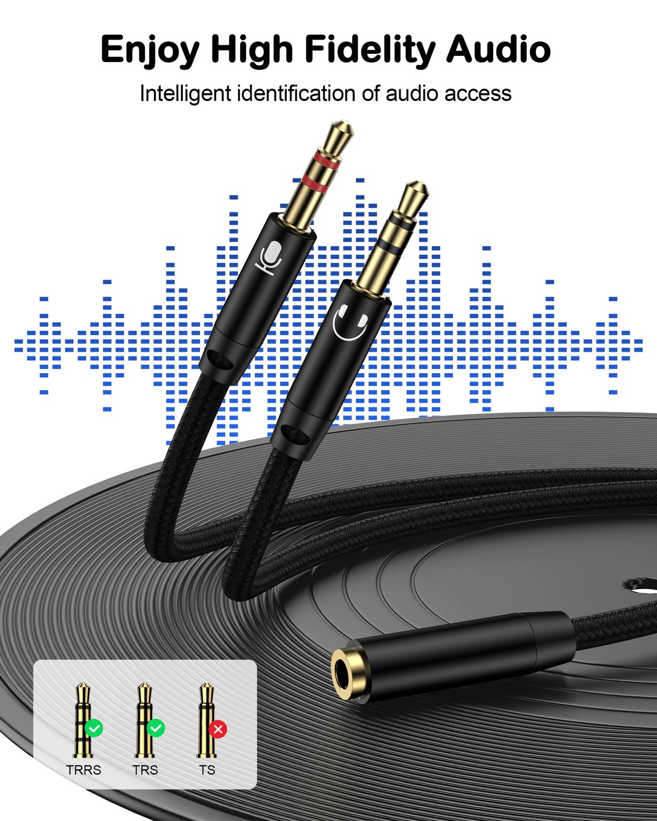 как выглядит Headphone Mic Splitter for PC, Braided 3.5mm Female to 2 27 cm, Pure Black фото