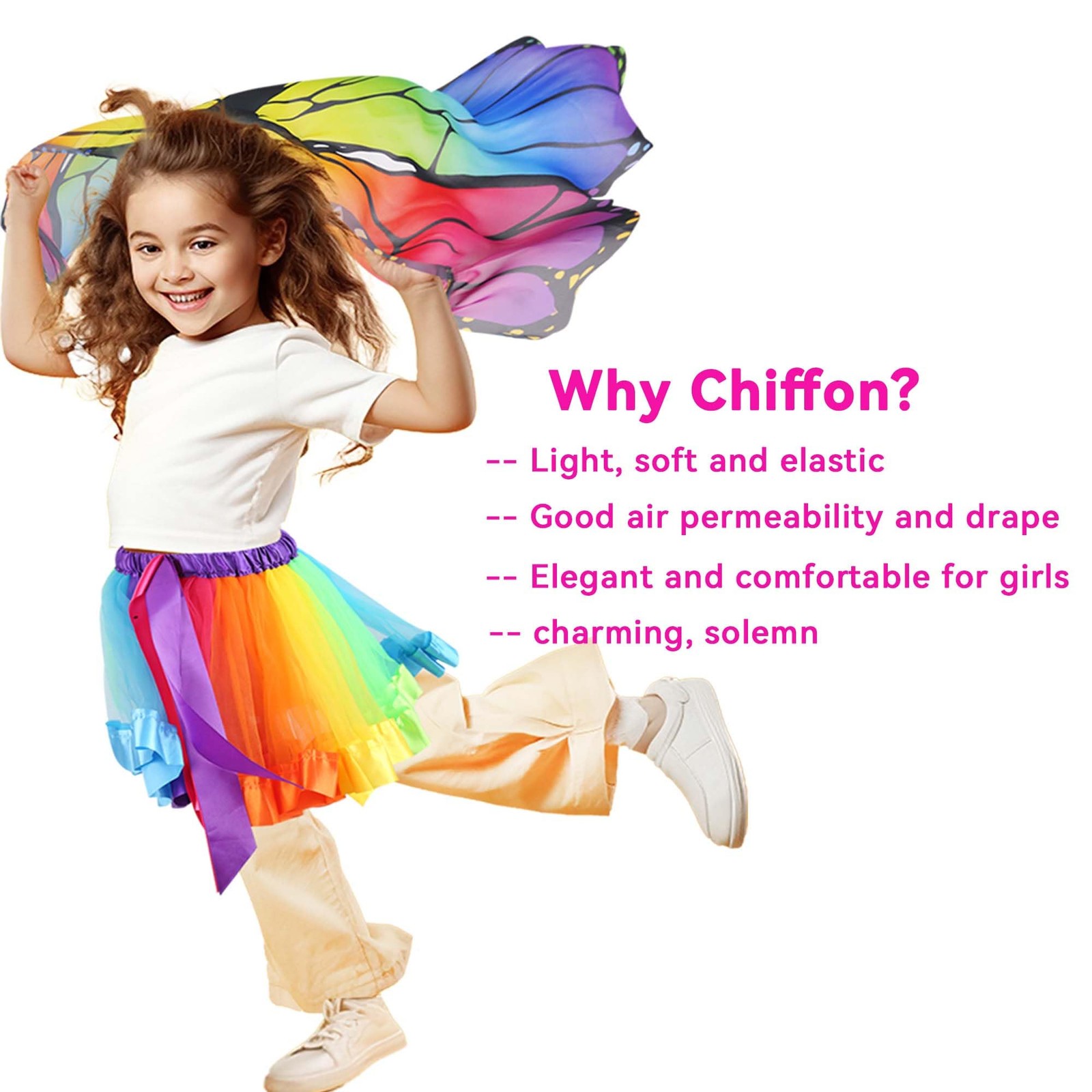 D.Q.Z Fairy Butterfly-Wings Costumes for Girls Dress Up 60cm 120cm, Rainbow
