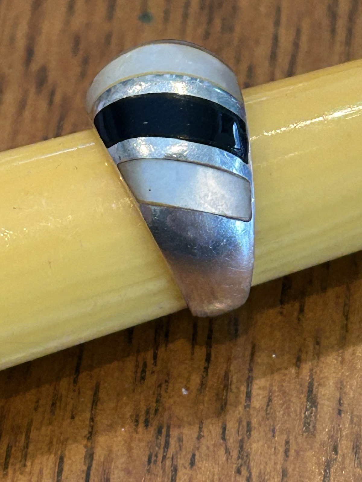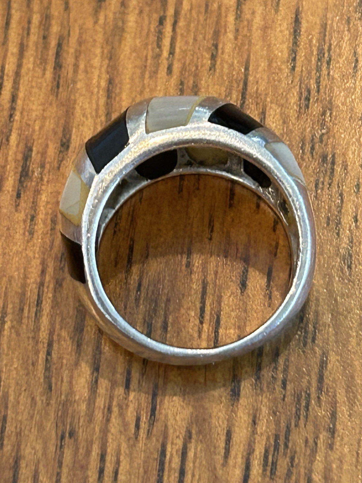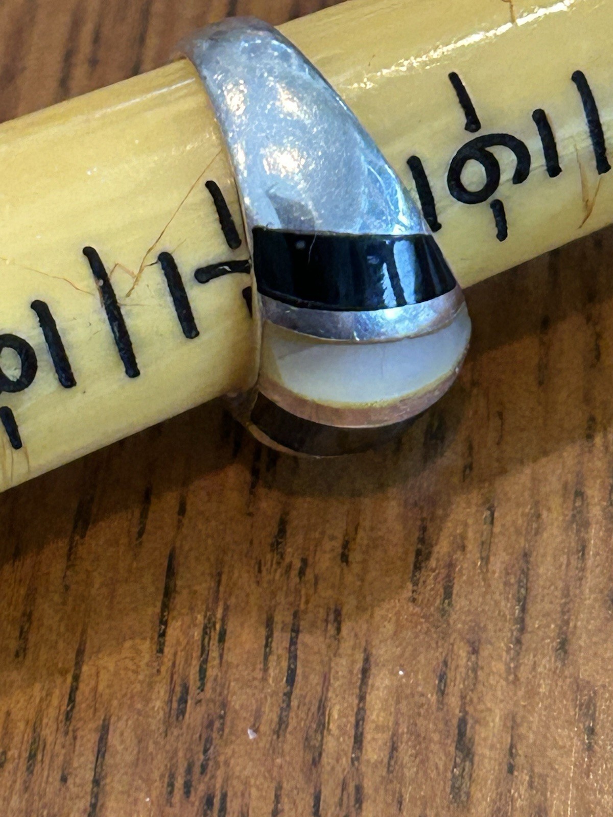 Sterling Silver Onyx Mother Of Pearl Ring MOP Sz. 6.75