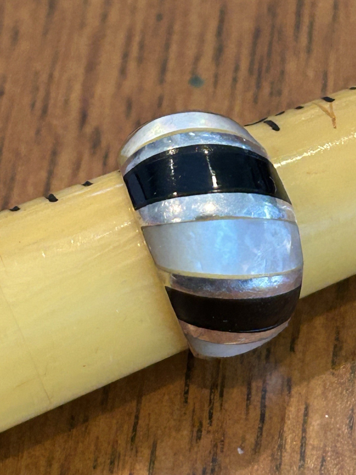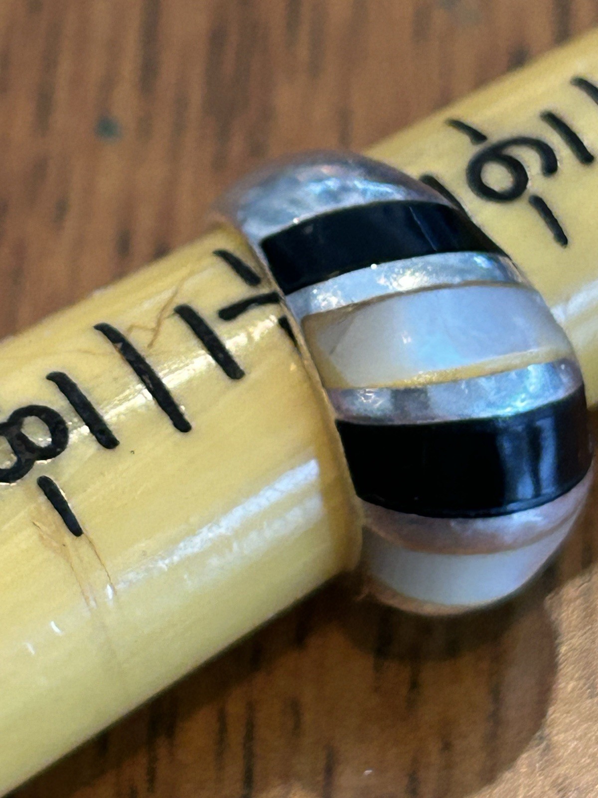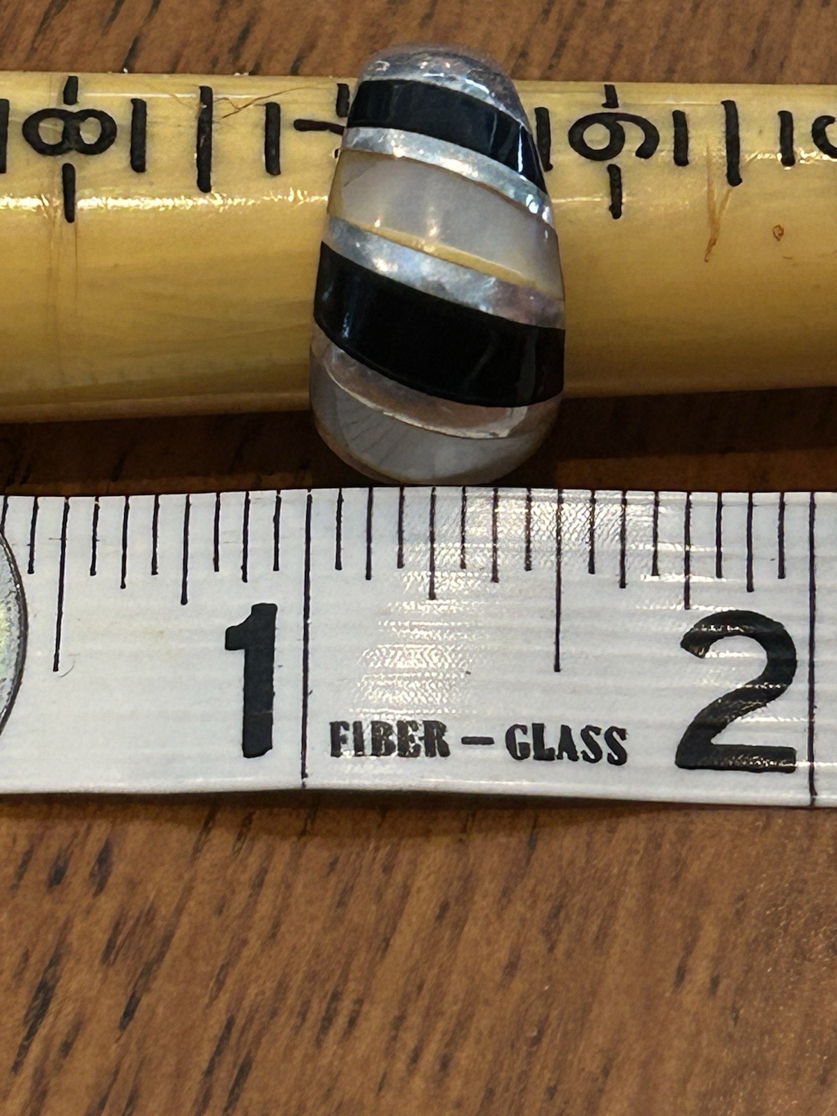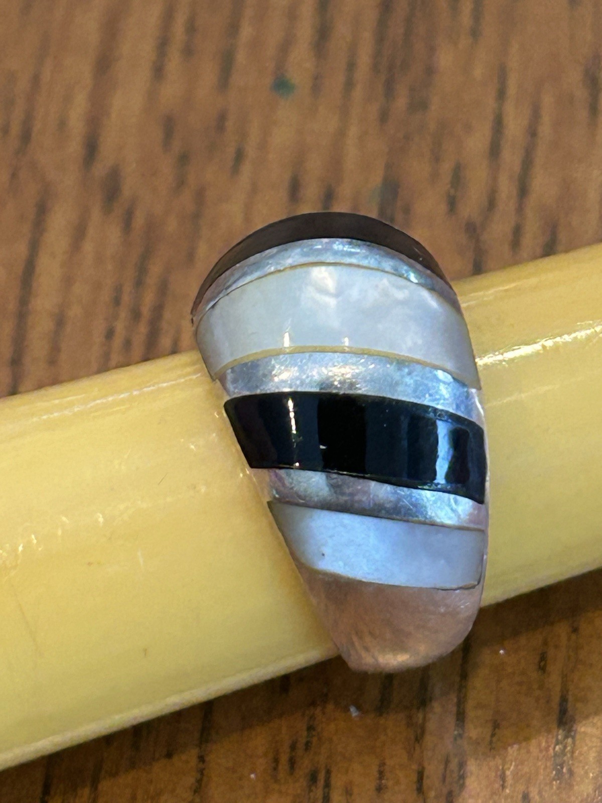 Sterling Silver Onyx Mother Of Pearl Ring MOP Sz. 6.75