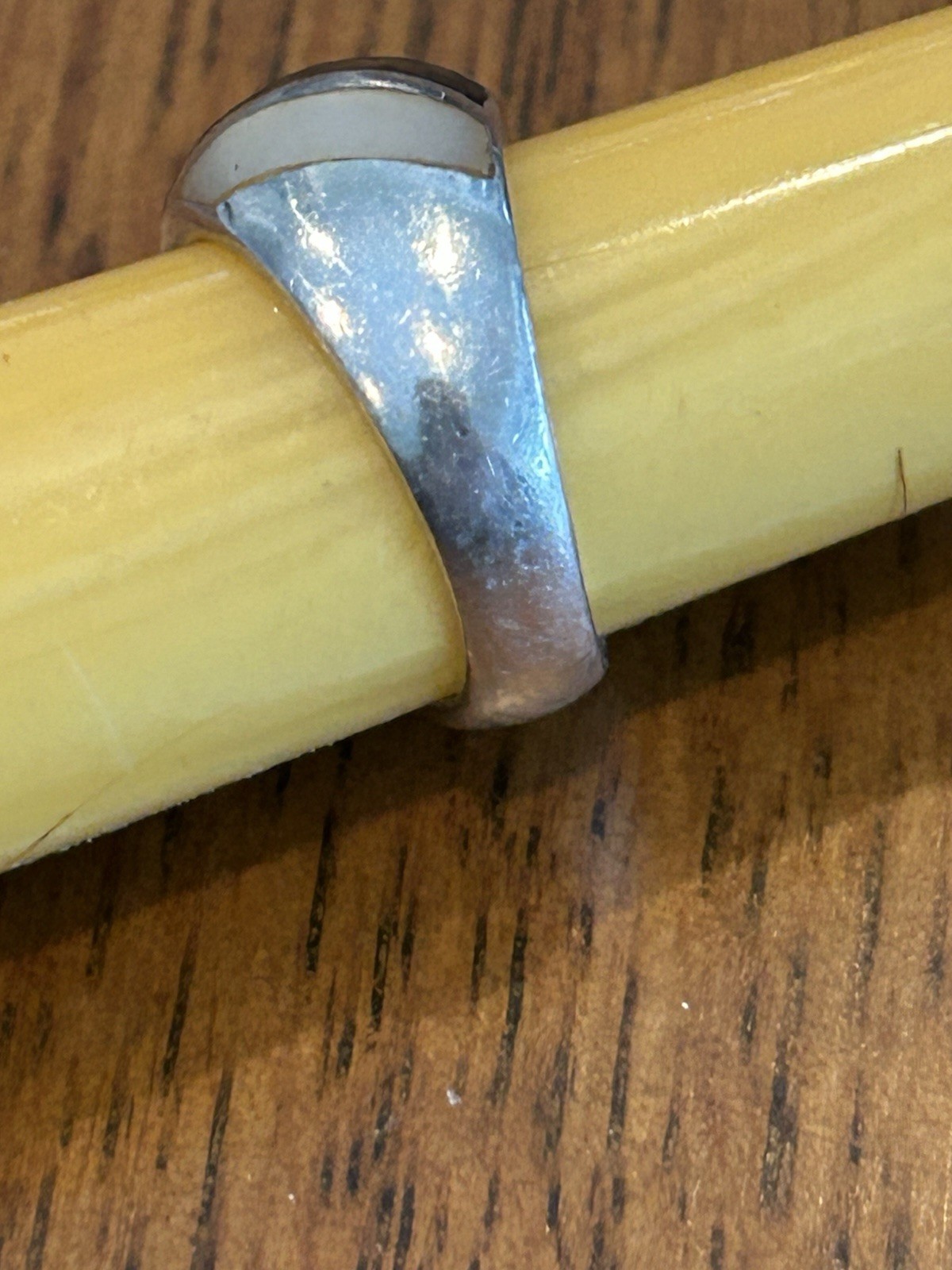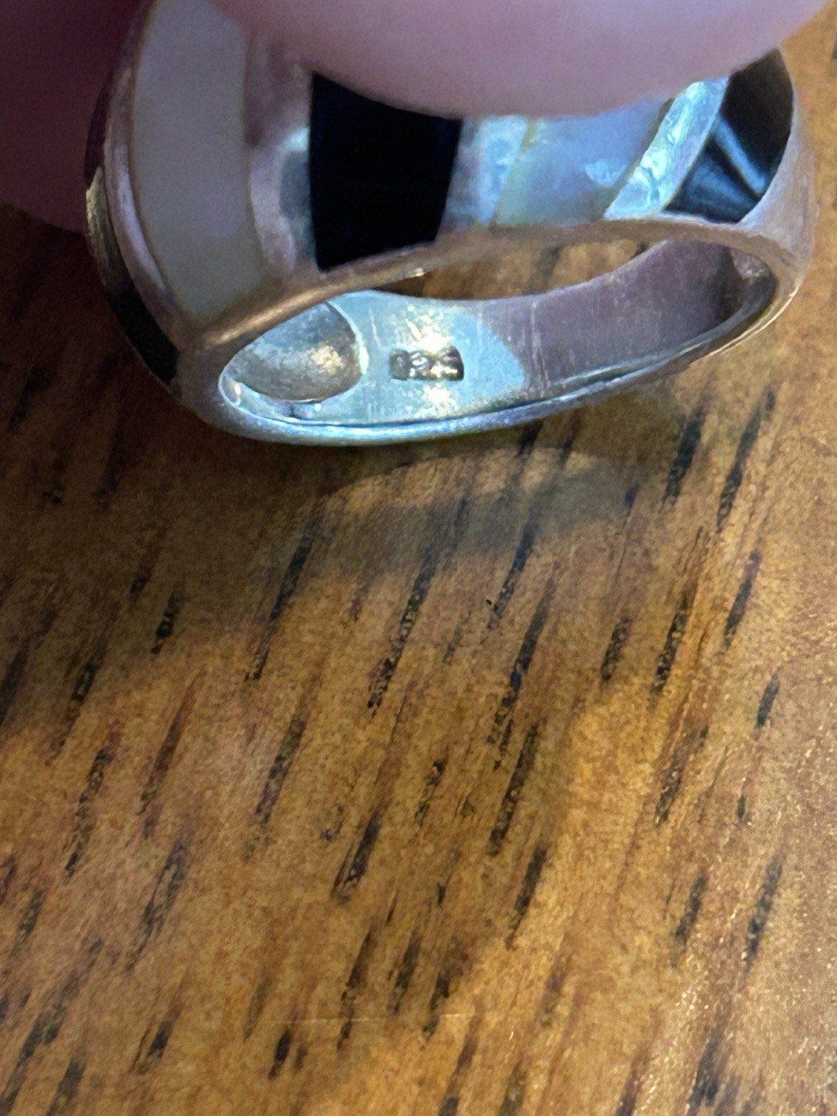 как выглядит Sterling Silver Onyx Mother Of Pearl Ring MOP Sz. 6.75 фото
