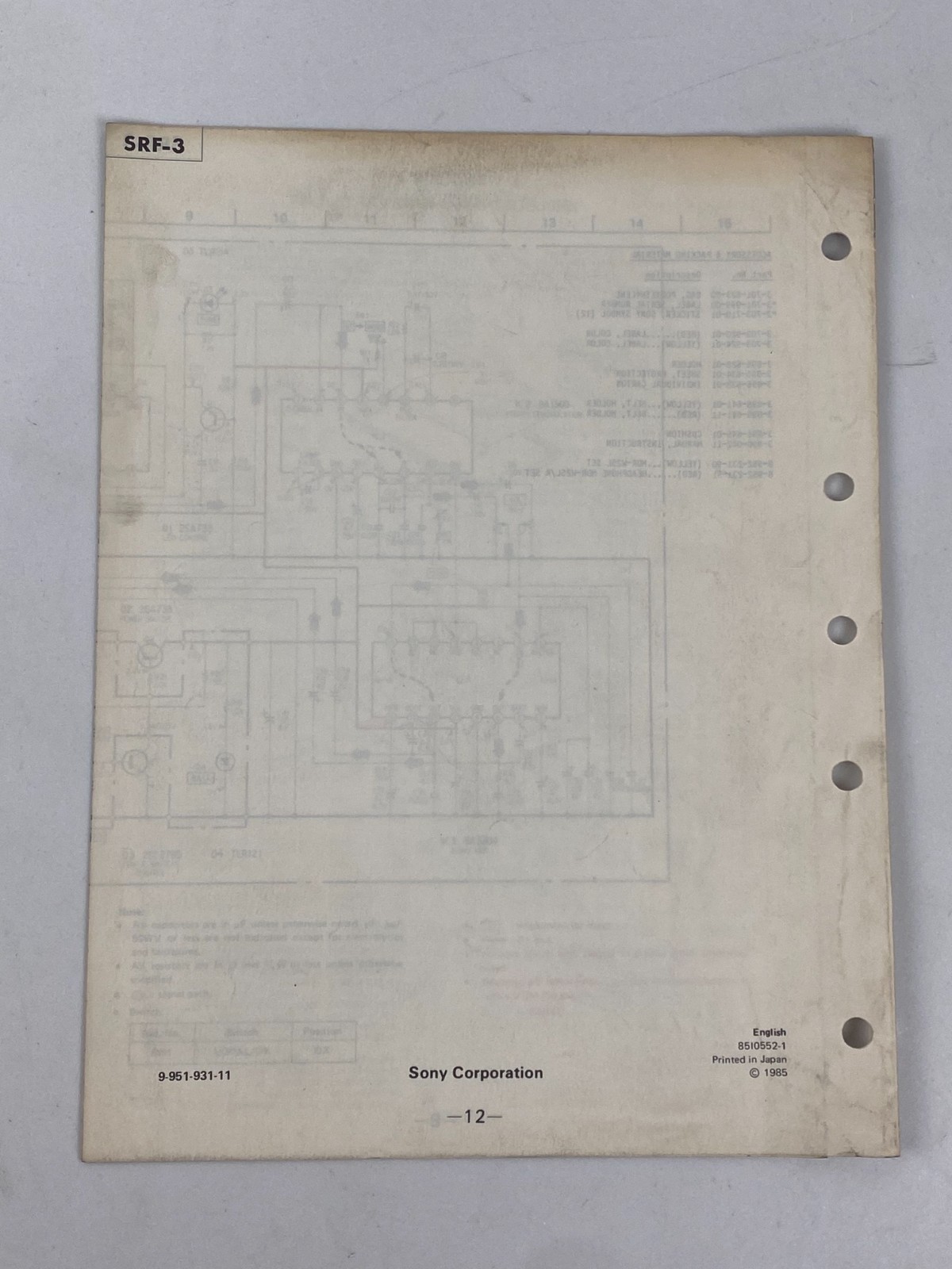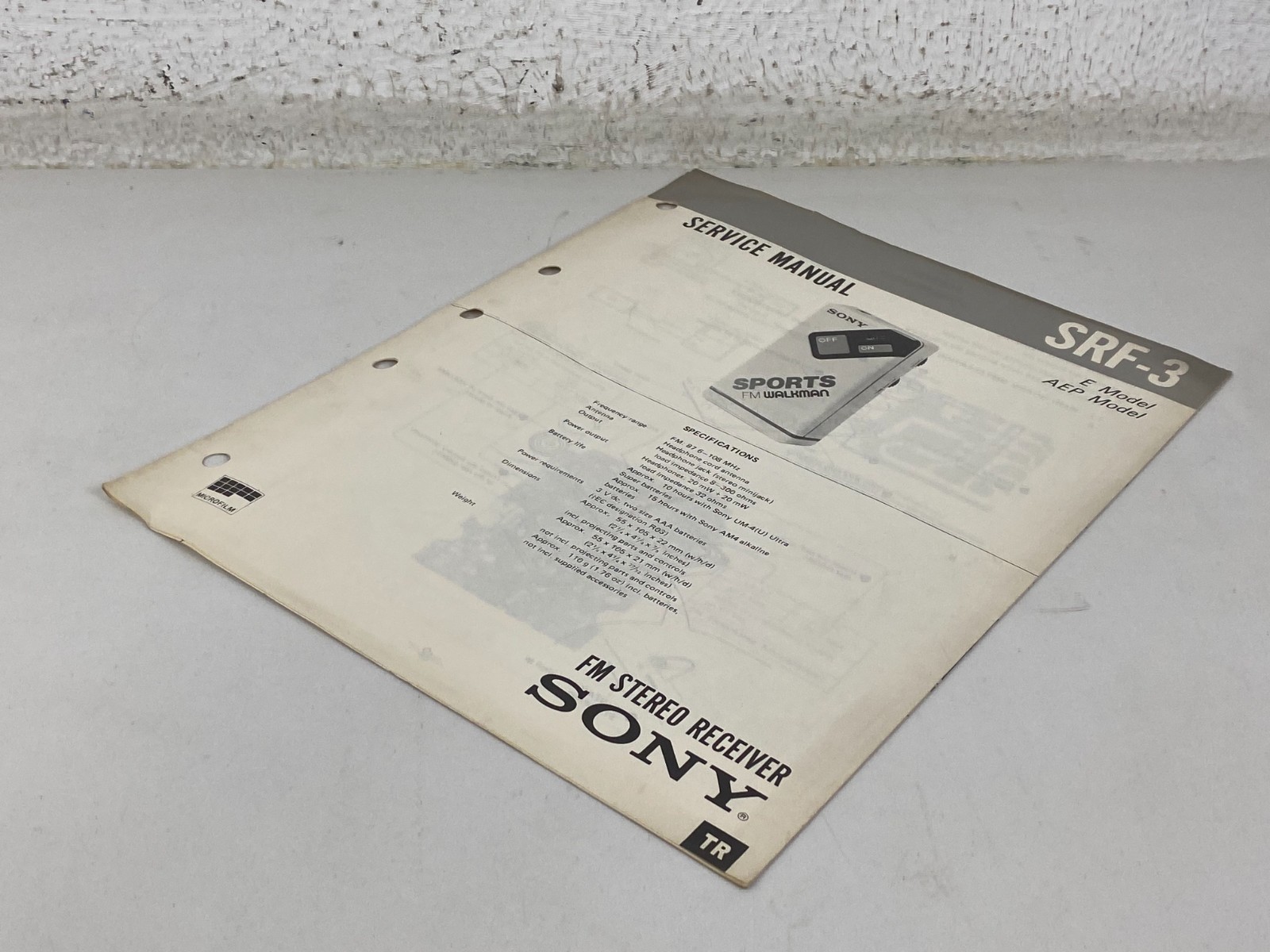 Vintage Sony SRF-3 Sports Walkman Radio FM Receiver Service Manual Original