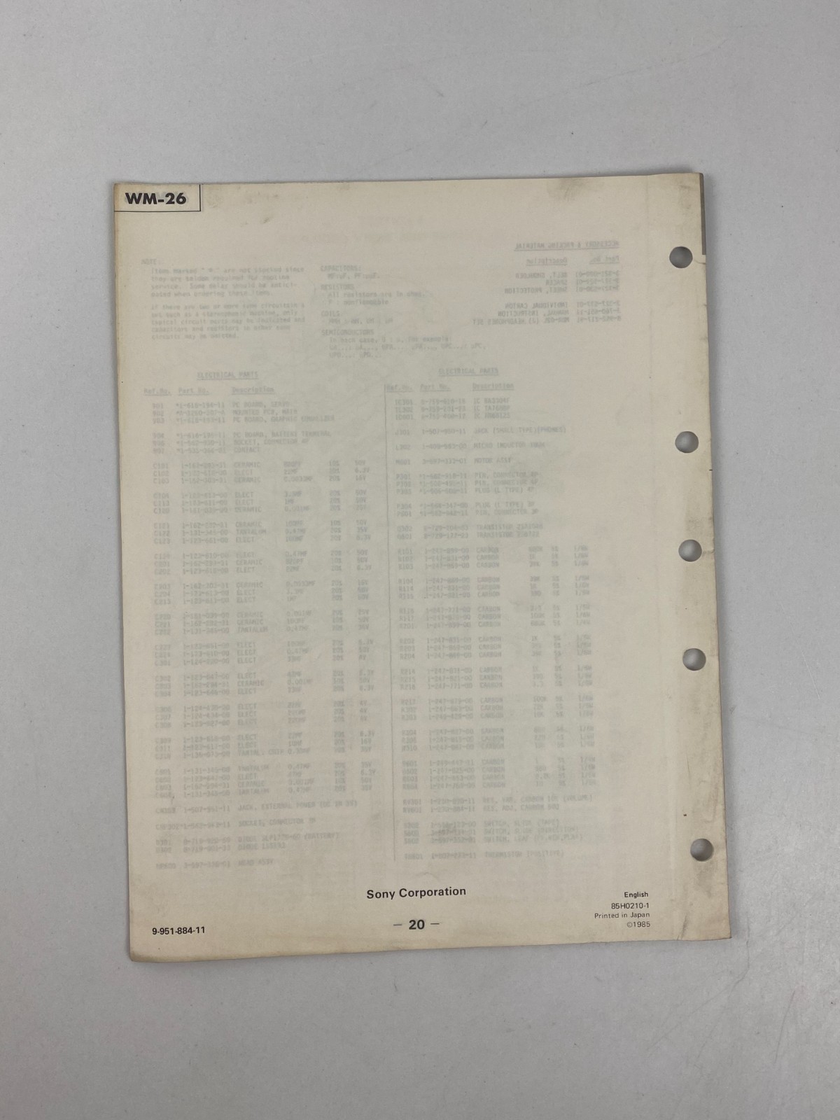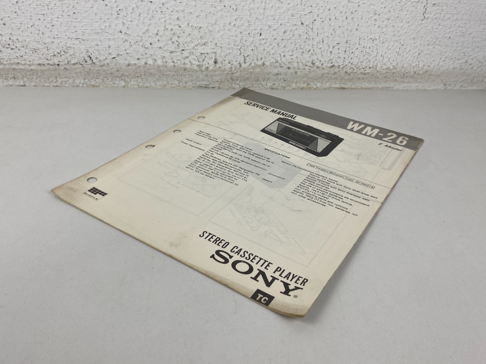 Vintage Sony WM-26 Wallkman Cassette Service Manual Original