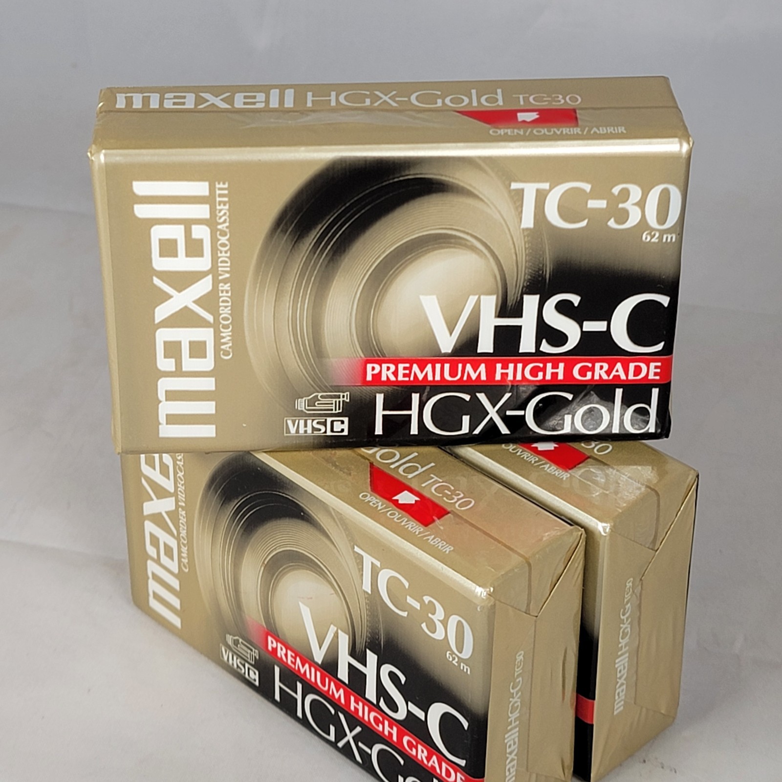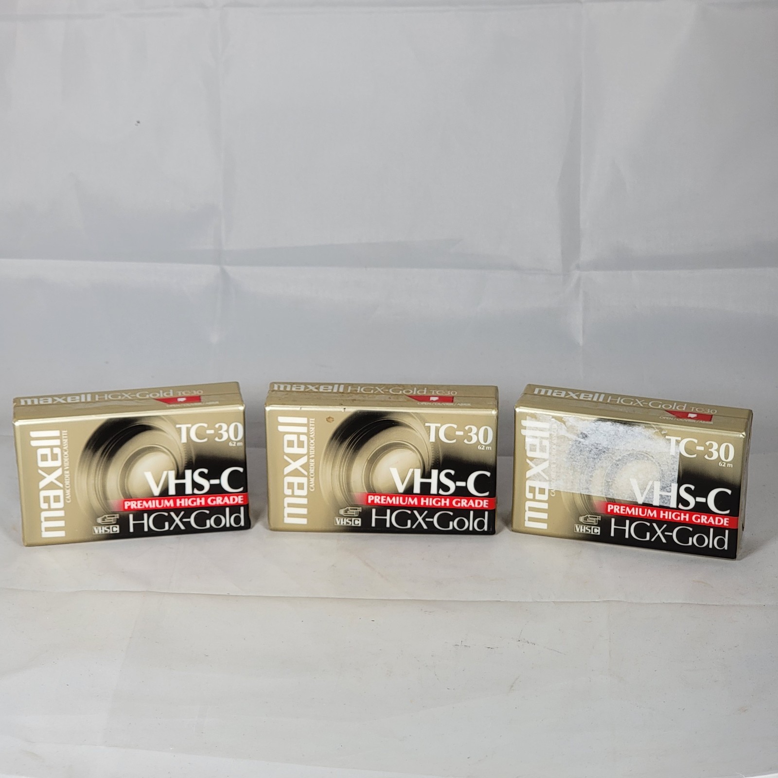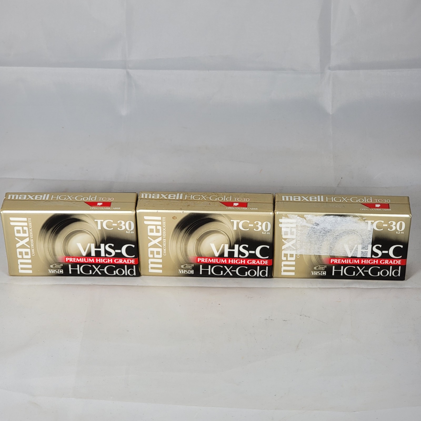 Lot of 3 New Sealed Maxwell VHS-C TC-30 HGX-Gold Premium High Grade Video Tapes