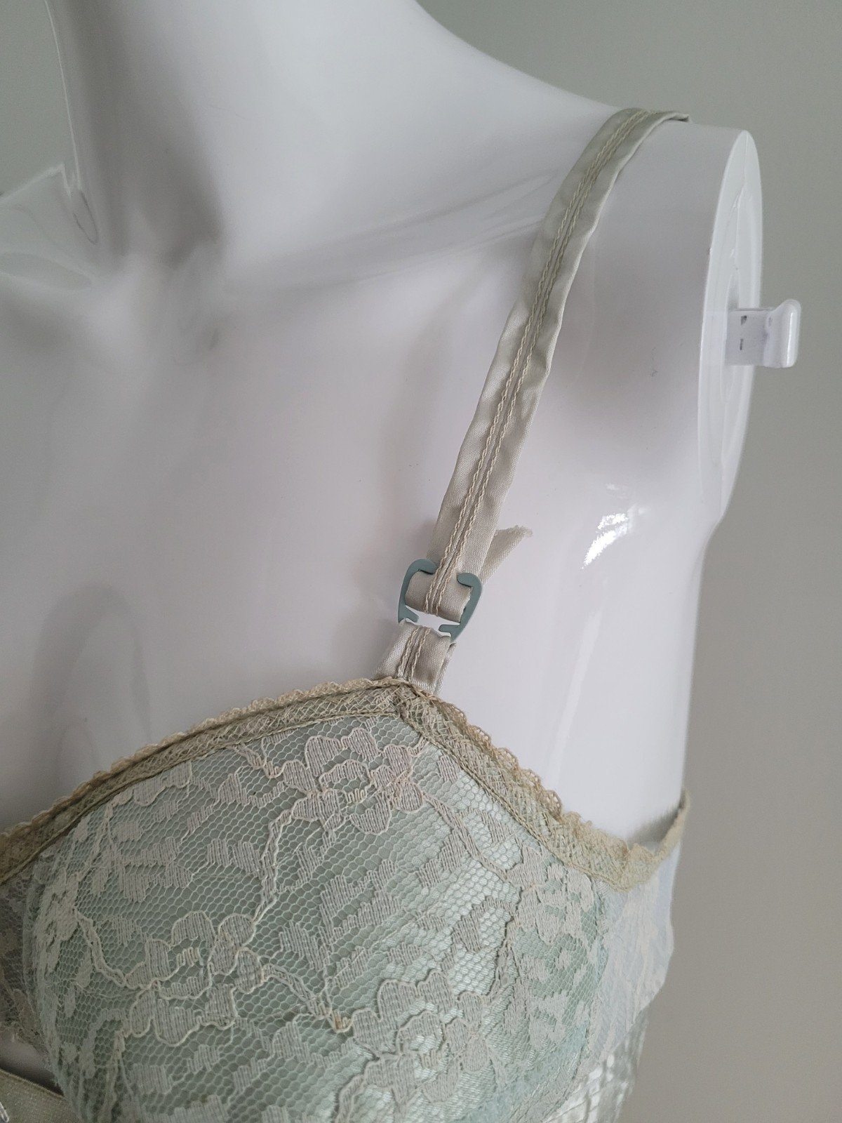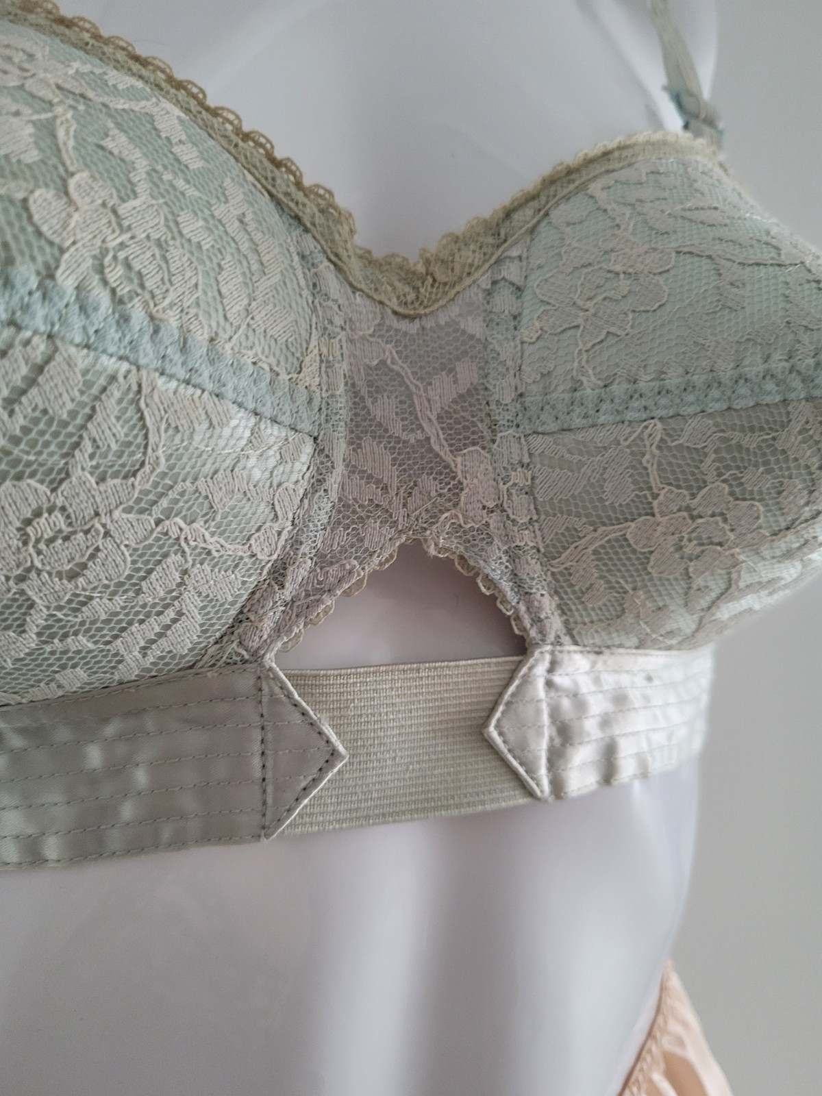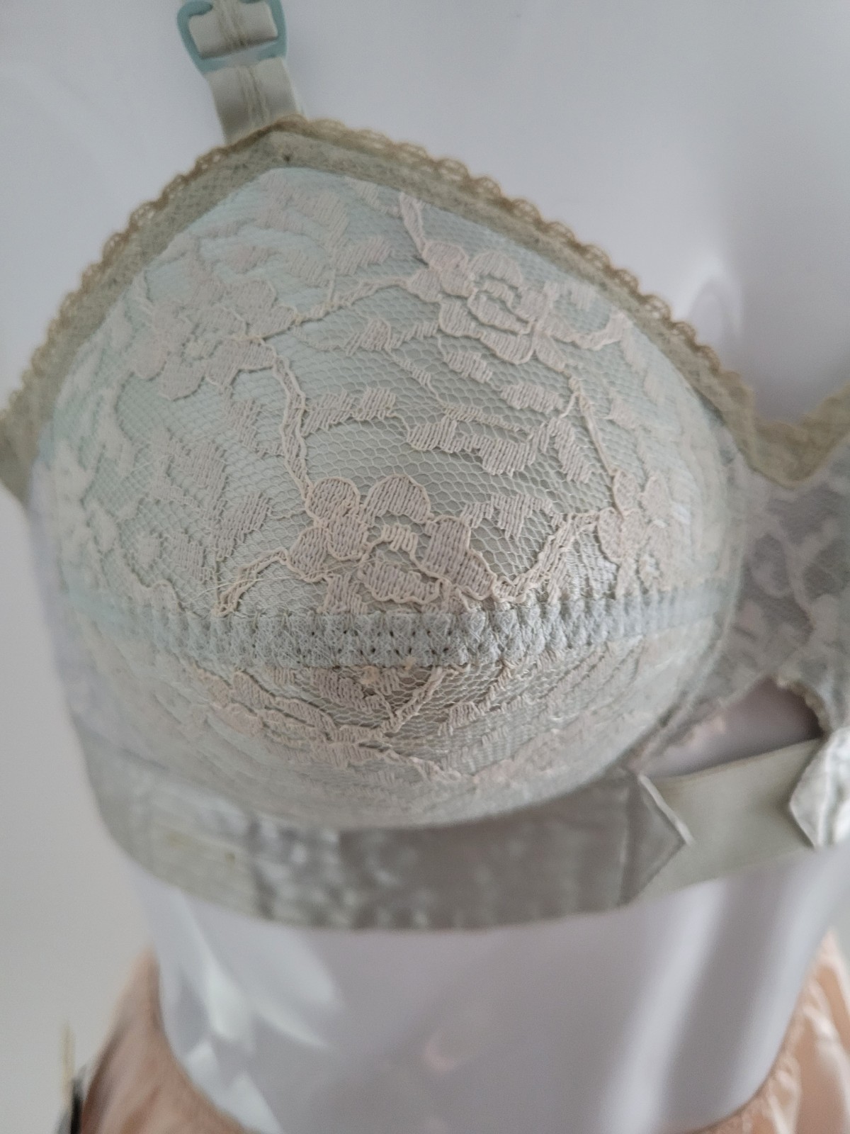 как выглядит Vintage Blue Satin Lace Pointy Bullet Bra 34 B Isis Pinup фото