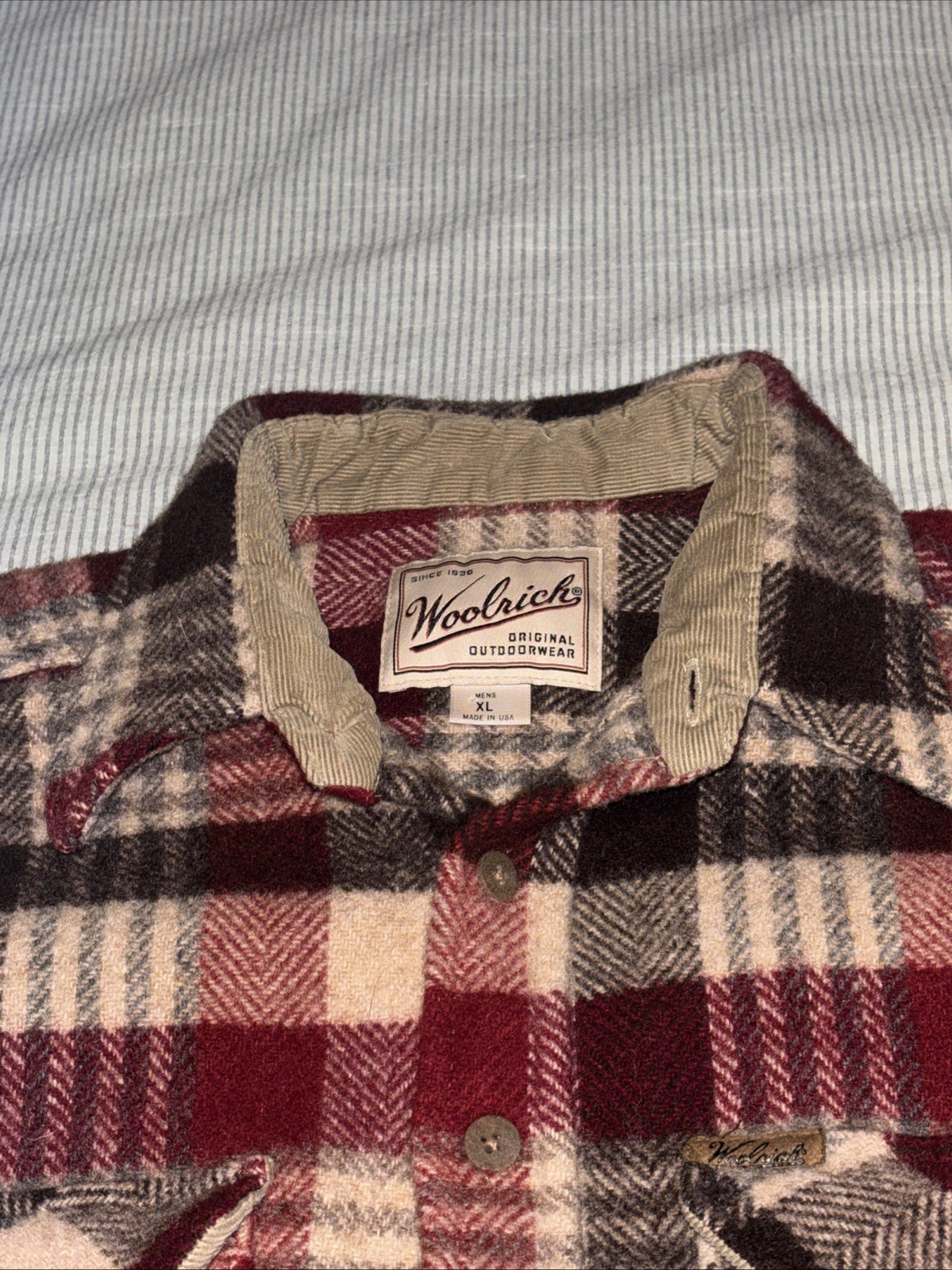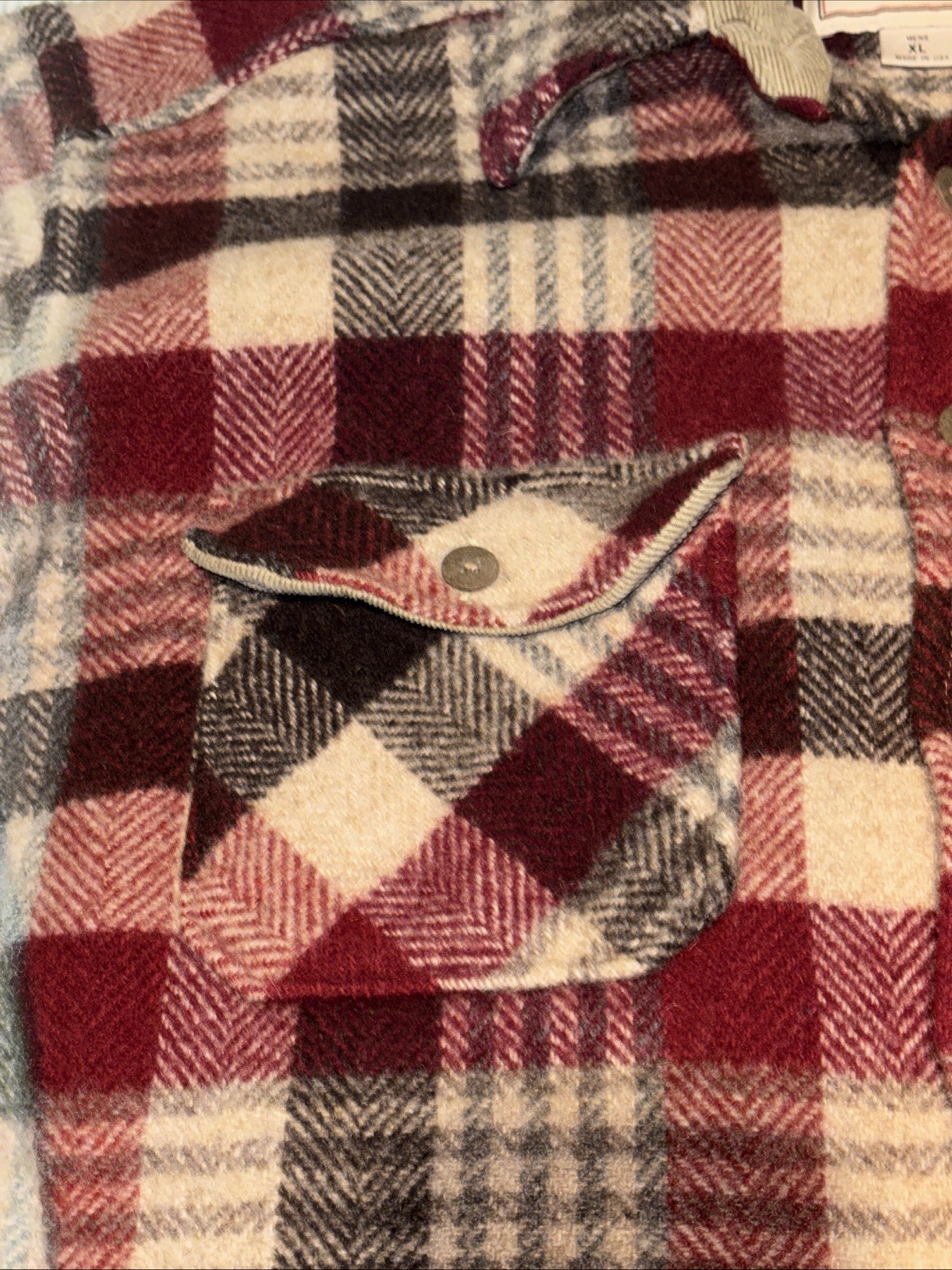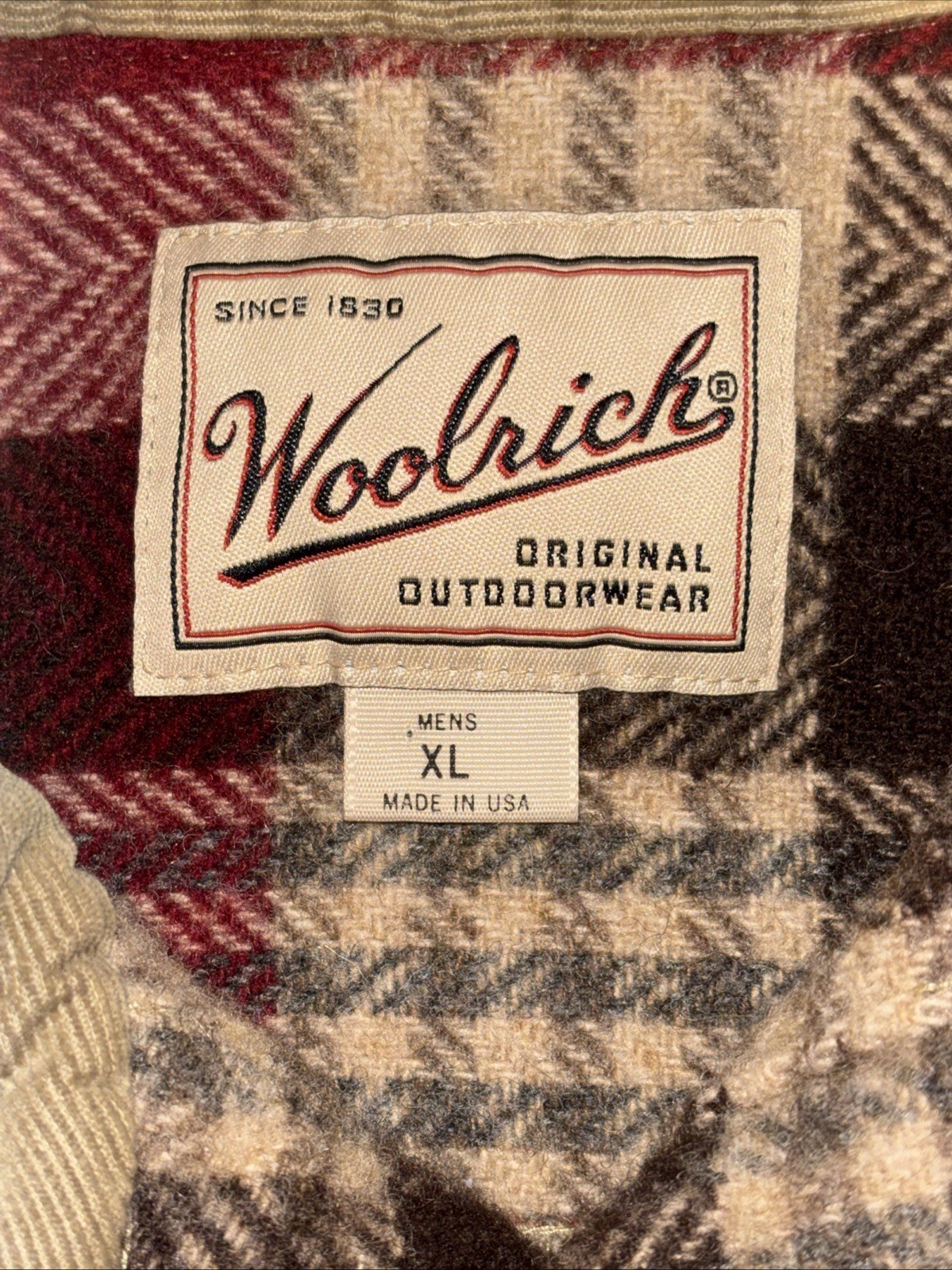 как выглядит WOOLRICH buffalo plaid wool flannel shirt jacket LARGE tag vtg 70s 80s usa made фото