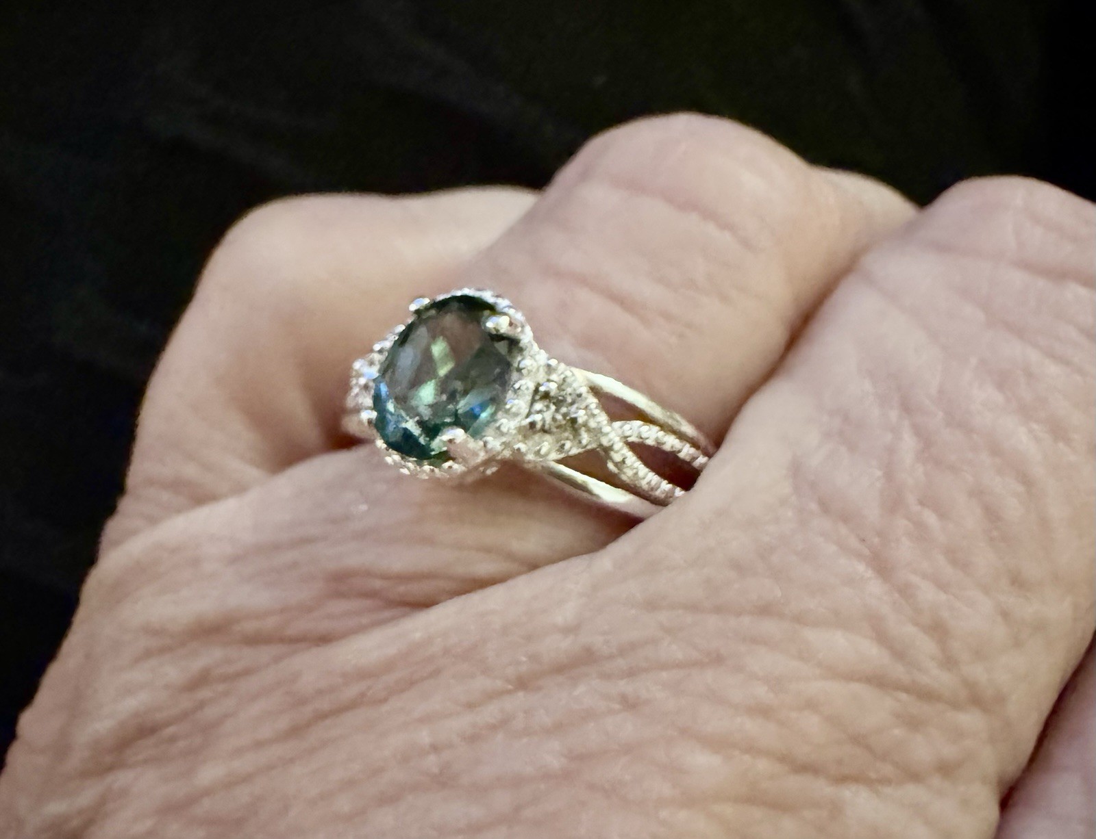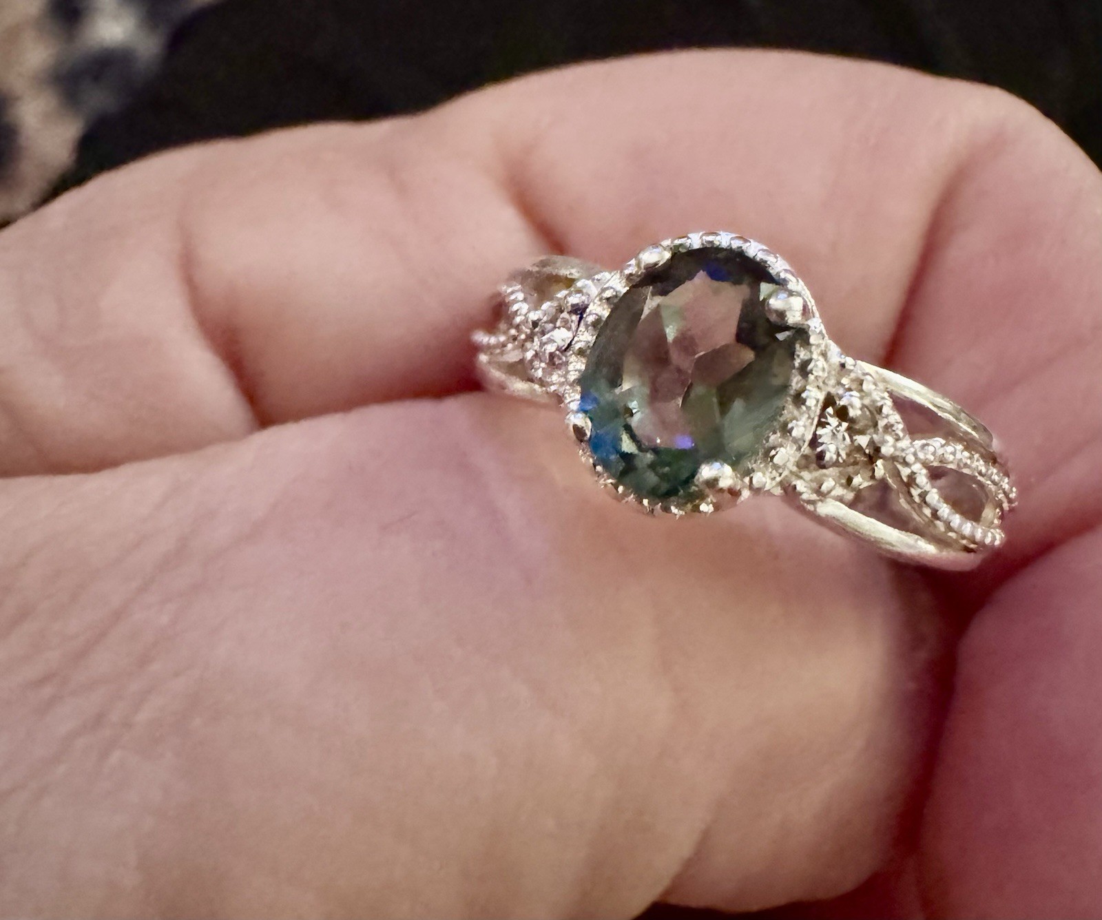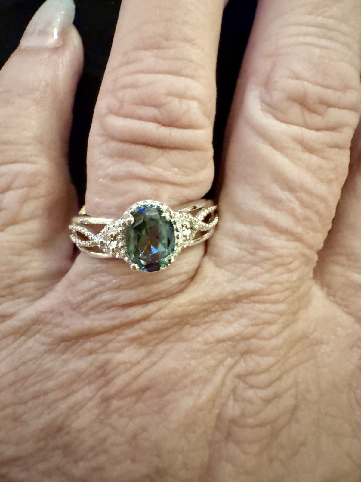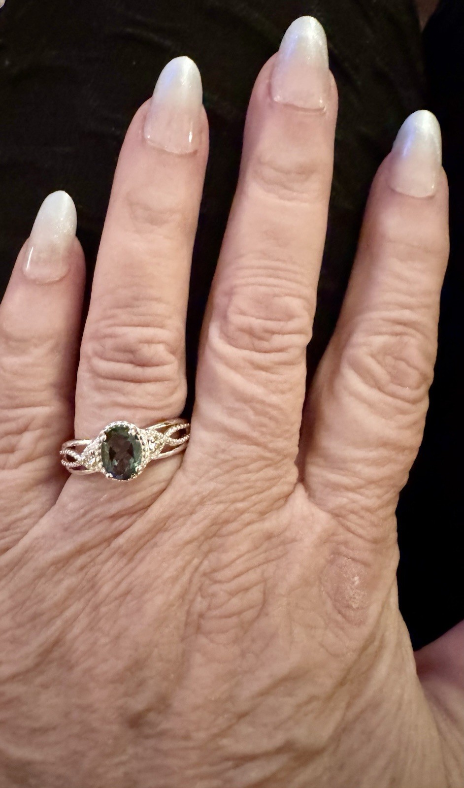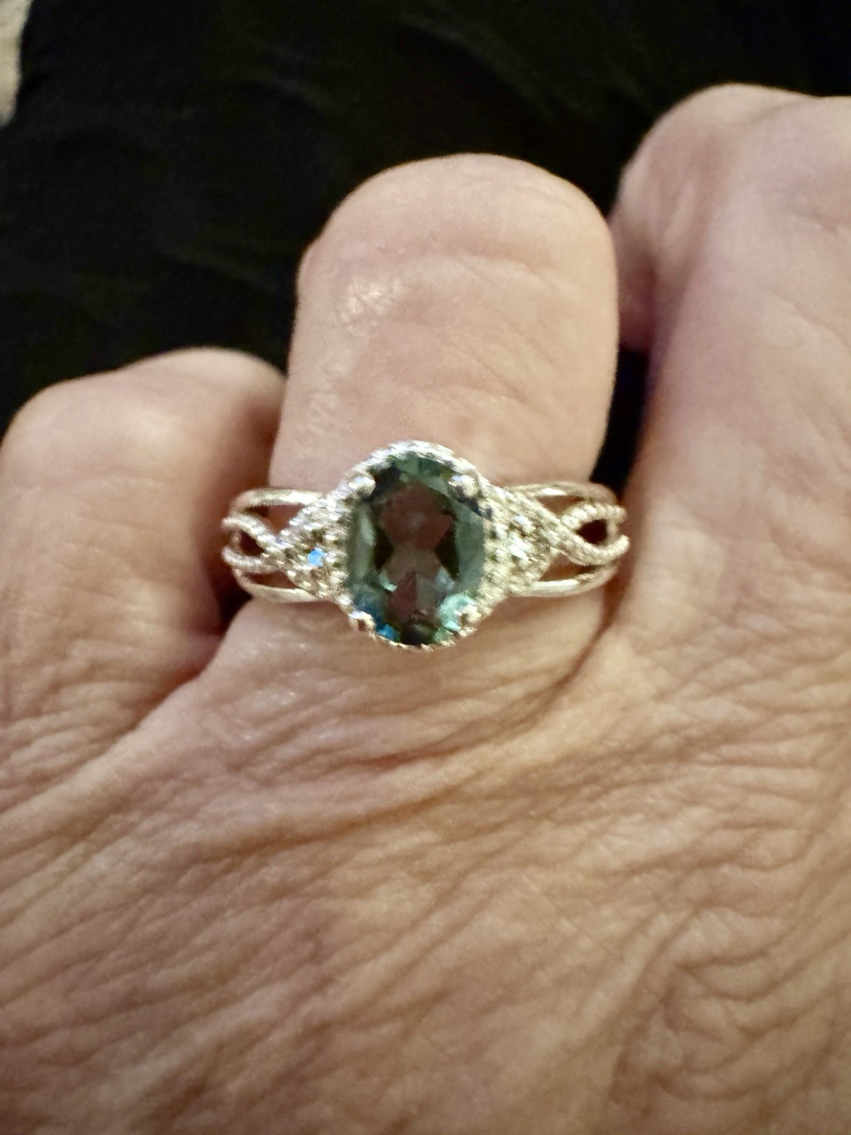 как выглядит Sterling Silver 925 oval cut green quartz ring with cz accent stones size 7.25 фото