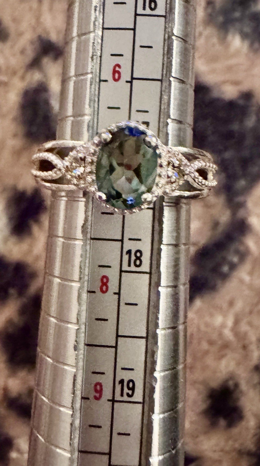 Sterling Silver 925 oval cut green quartz ring with cz accent stones size 7.25