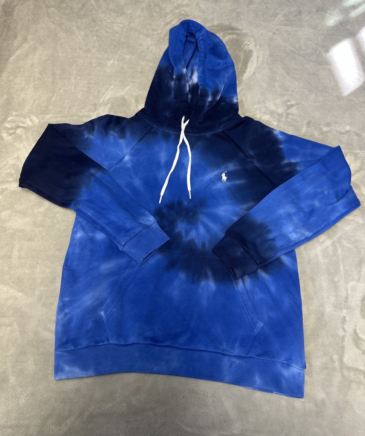 Ralph Lauren Blue Tie Dye Hoodie Size Medium Pullover Sweatshirt