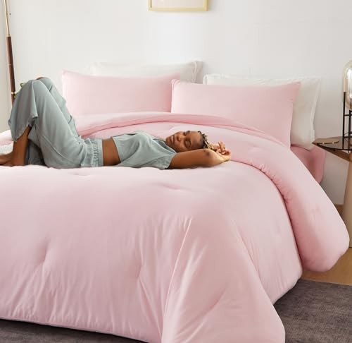 Comforter Set Twin, 4 PCS Bed in a Bag for All Season Bed Twin/Twin XL Pink