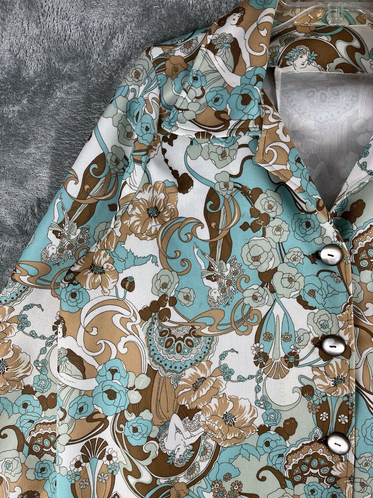Vintage 60s 70s Polyester Leisure Suit Jacket Shirt Blazer Womens XL Disco Mod