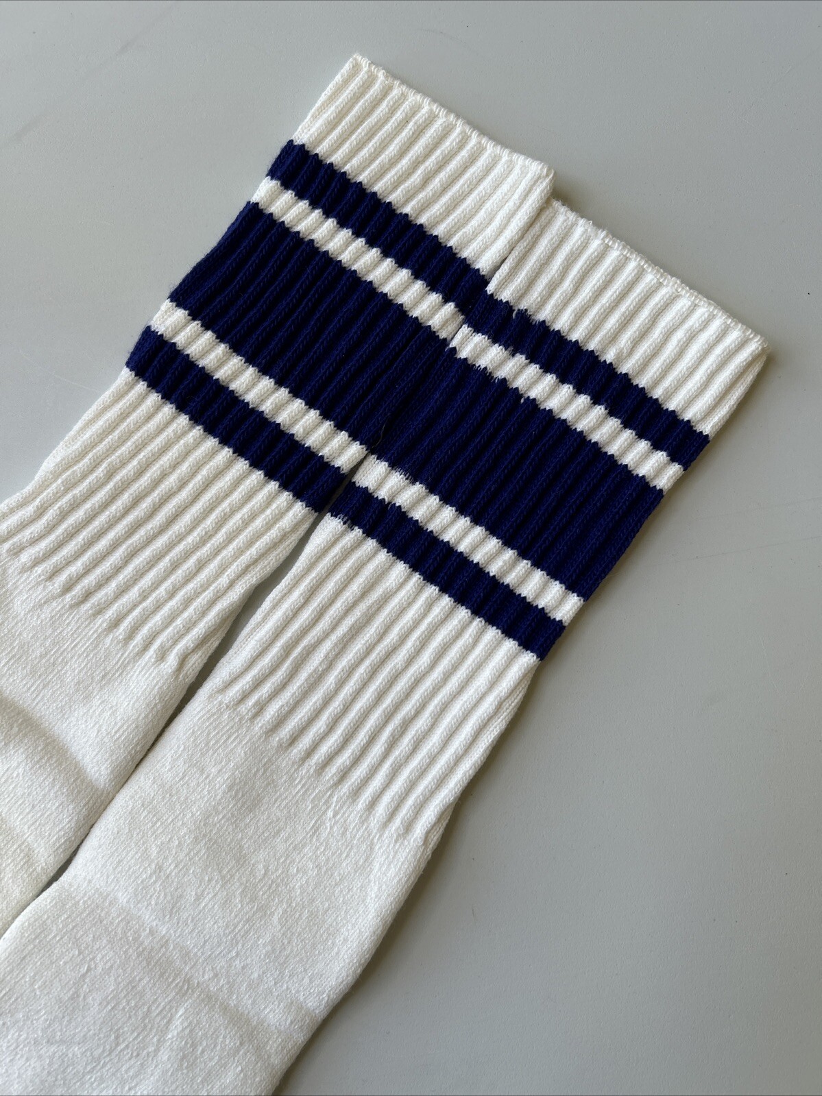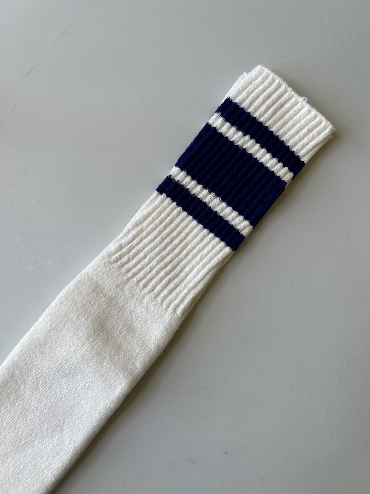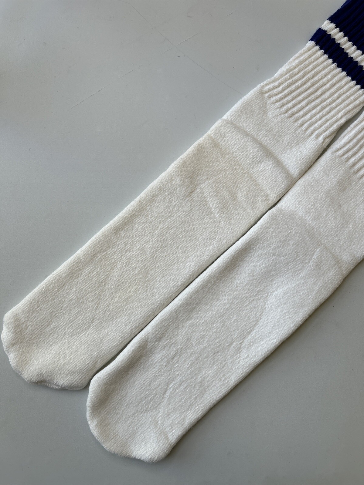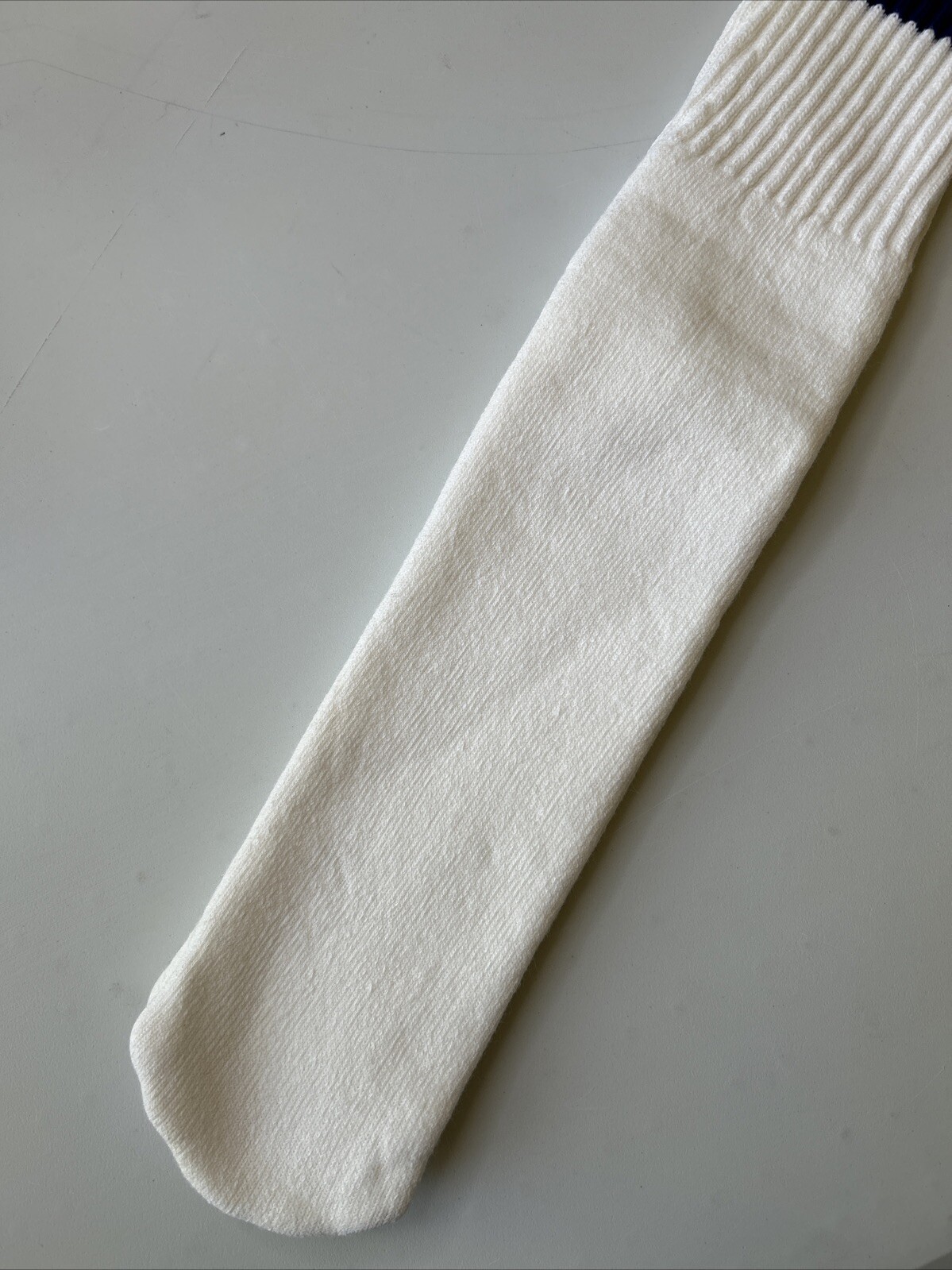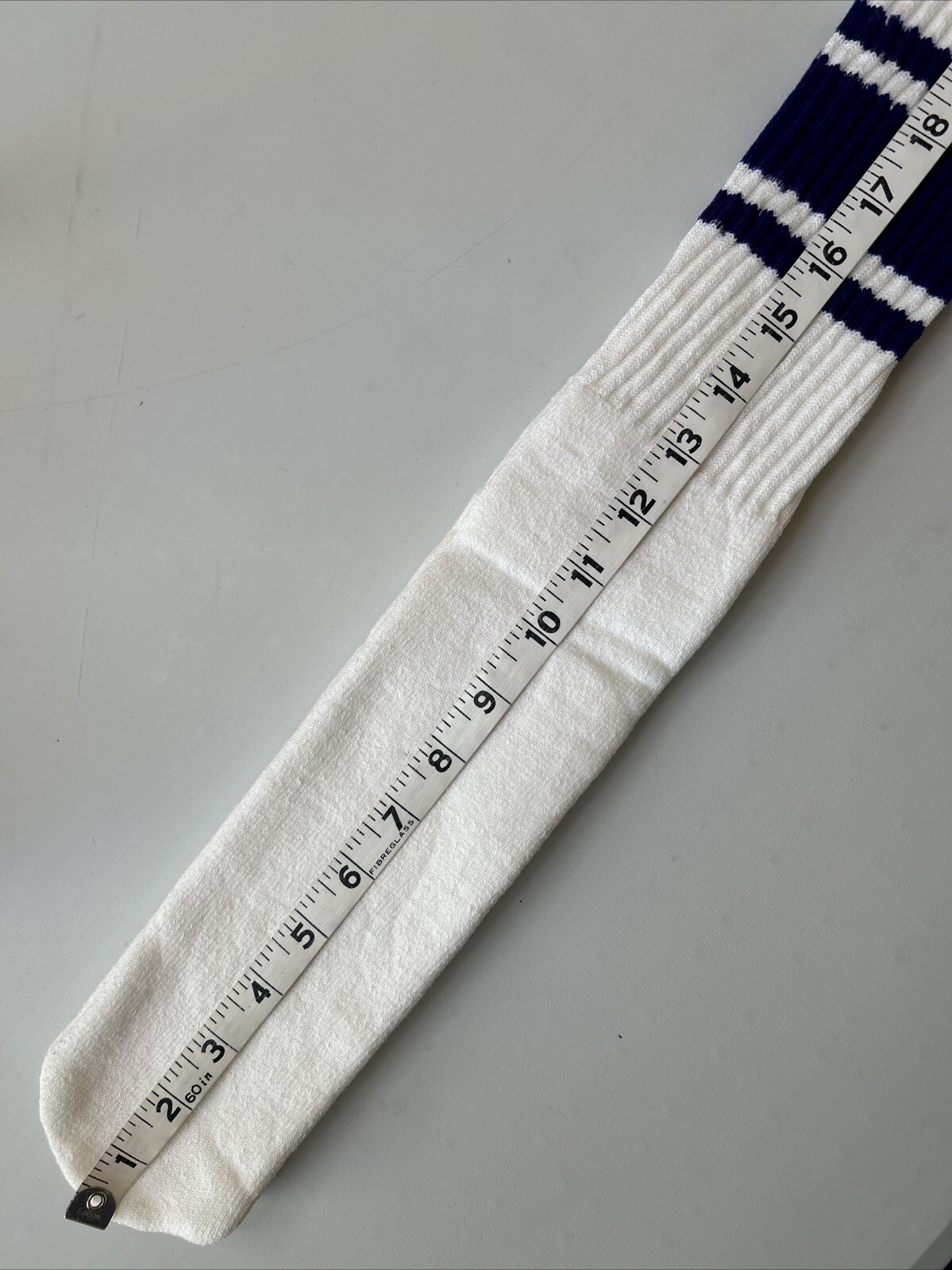 VTG Tube Socks 10-13 Acrylic 80s White Navy Blue 20 90's Sports Striped