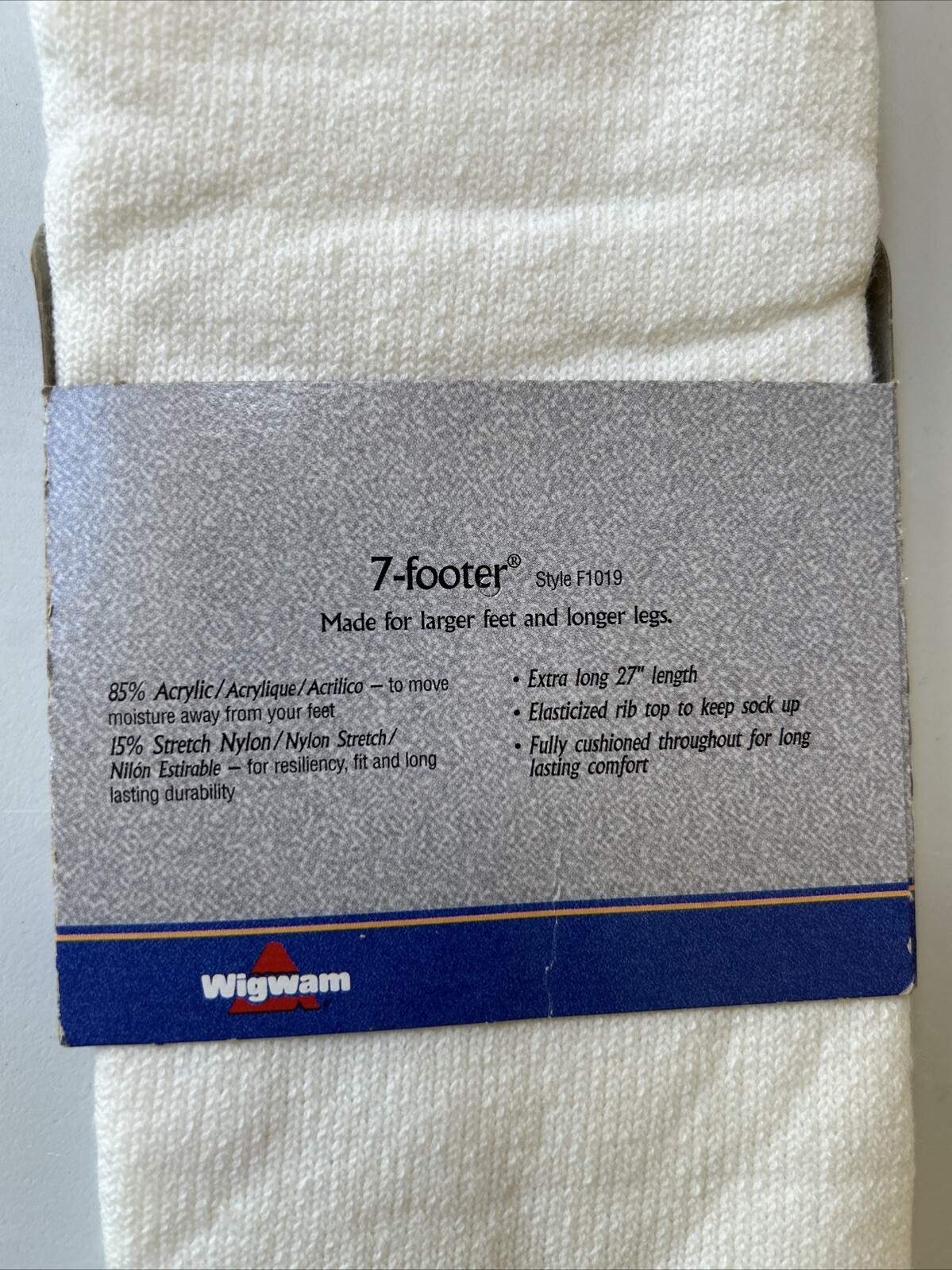 VTG Socks Wigwam 80's 90's 7-Footer Sports White 9-17 Acrylic USA Tube 25.