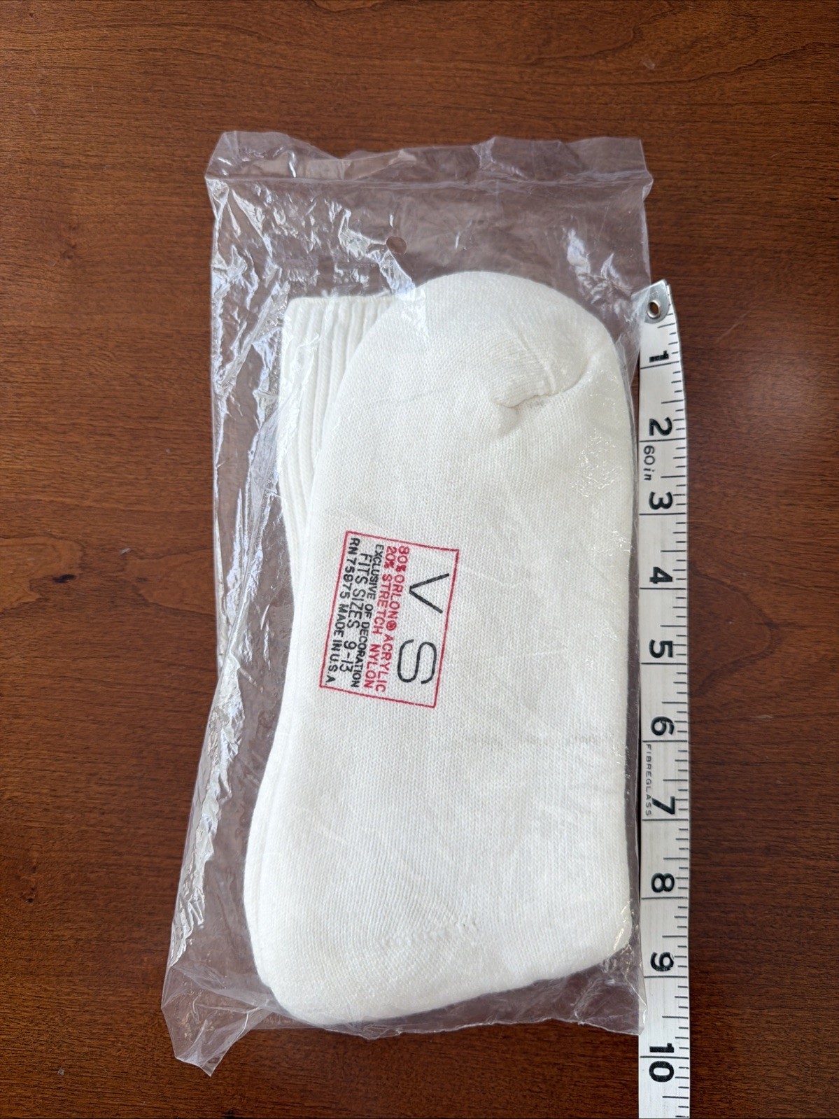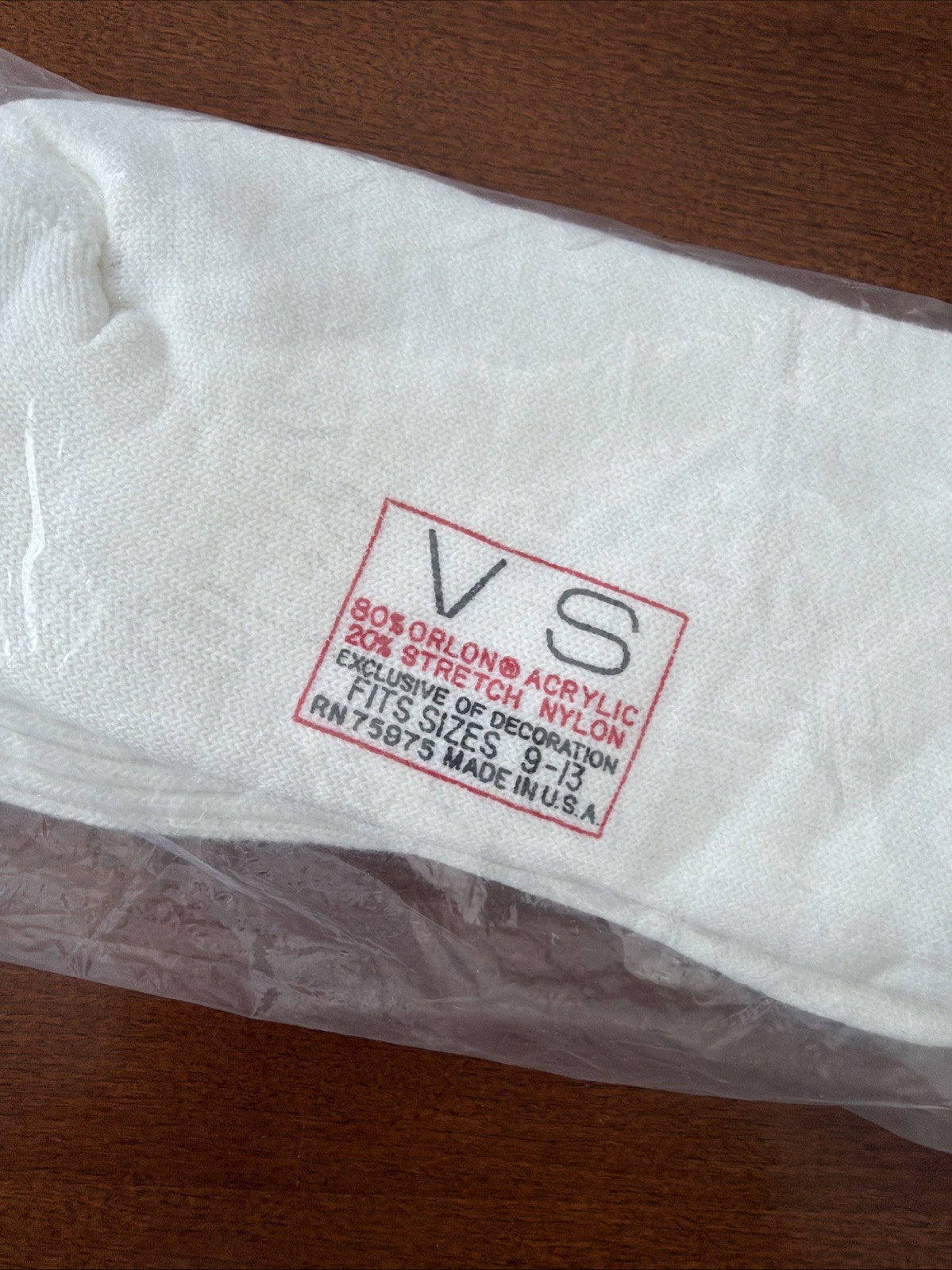 VTG Socks NOS VS 9-13 Crew Mid-Calf Orlon Acrylic 80's 90s White USA Made Red.