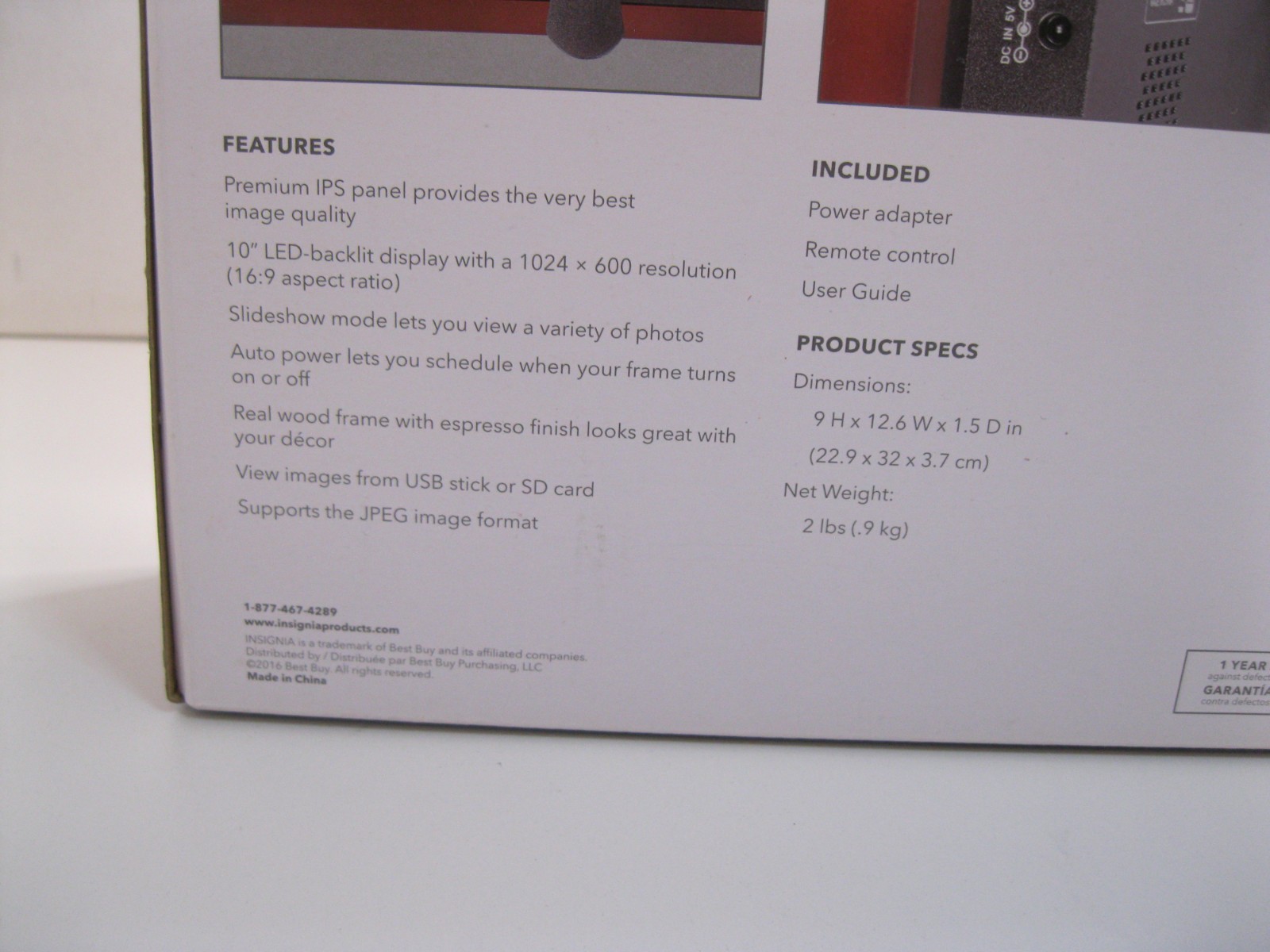 INSIGNIA NS-DPF10WW-17 10 Digital Photo Frame IPS Panel Espresso Wood NEW