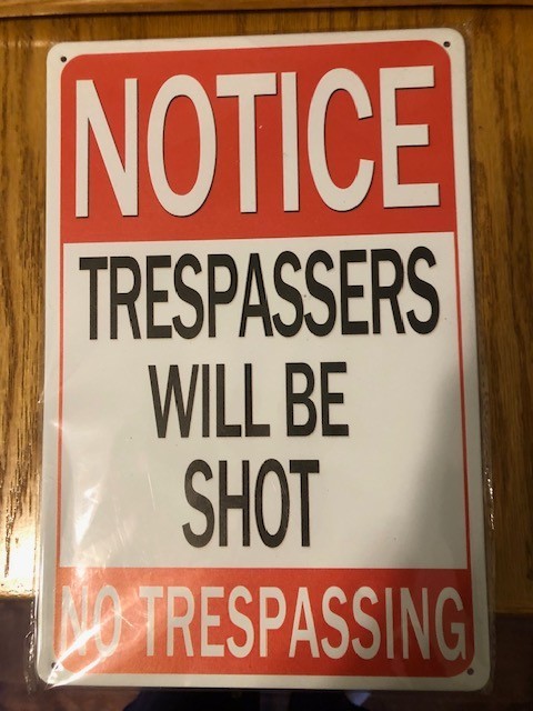 как выглядит 8" x 12" Embossed Metal Sign NOTICE TRESPASSERS WILL BE SHOT NO TRESPASSING фото