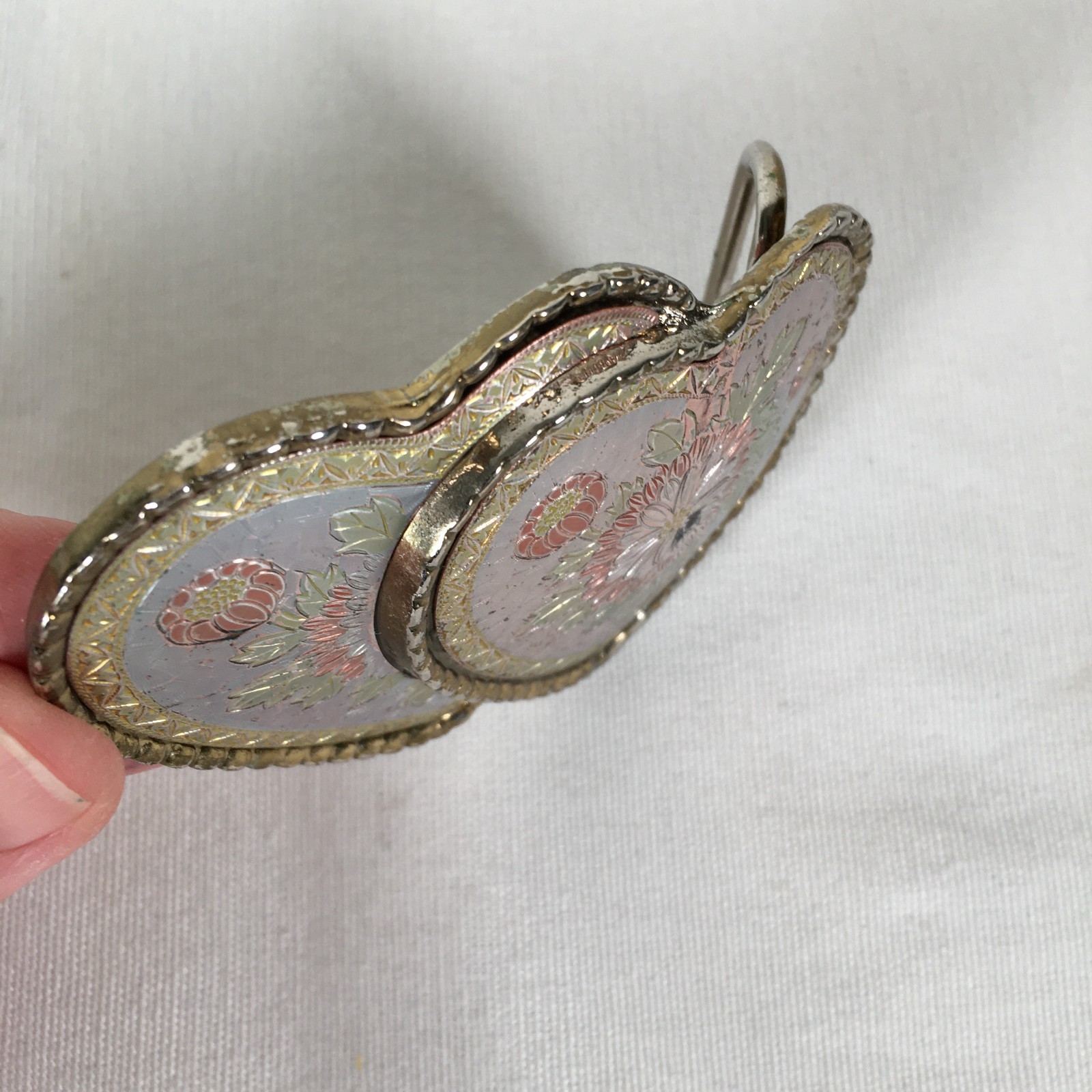 как выглядит Vintage Double Heart Belt Buckle Engraved Gold Silver Tone Made in USA фото