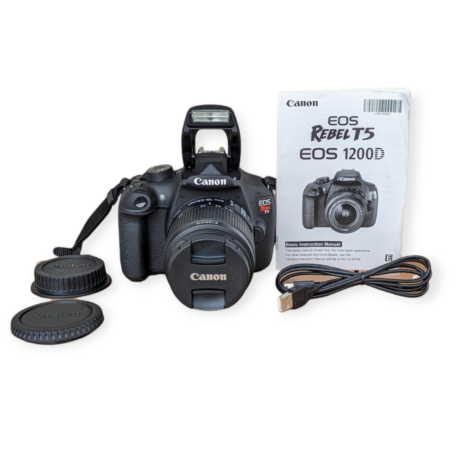 как выглядит Canon EOS Rebel T5 DSLR Black Digital Camera 18-55mm Lens Tested No Charger фото