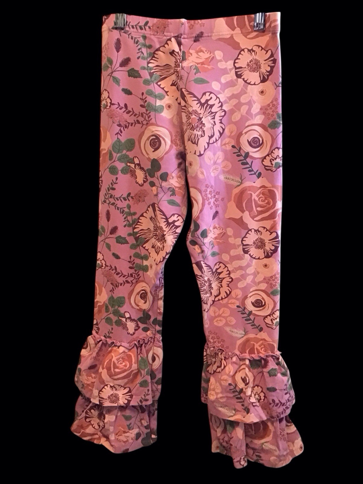 Matilda Jane Size 14 Girls Double Ruffle Pink Floral Leggings Pants