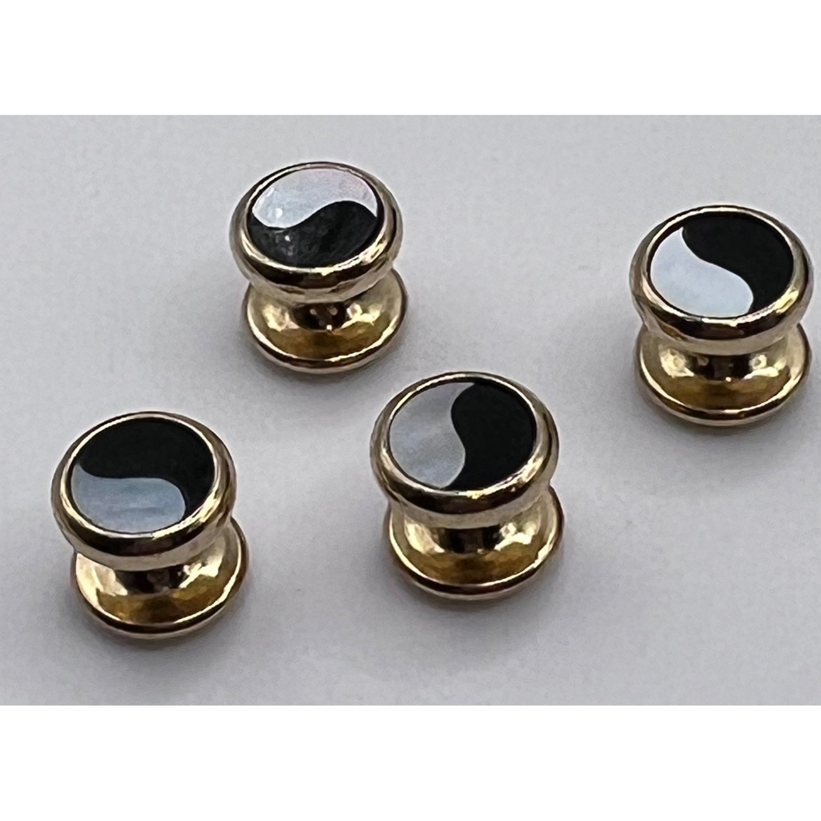 Vintage Gold Tone Black Pearlized Inlay Tuxedo Shirt Studs Set 4 Formal Wear