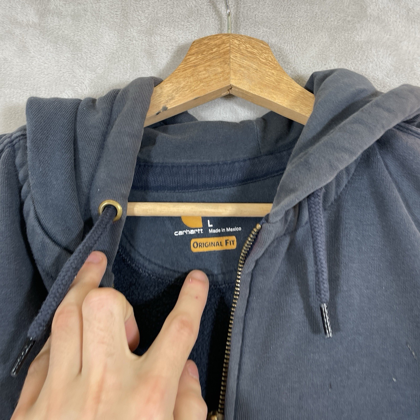 как выглядит Vtg Carhartt Full-Zip Heavyweight Cotton Hoodie Sweatshirt L Paint Distress Fade фото