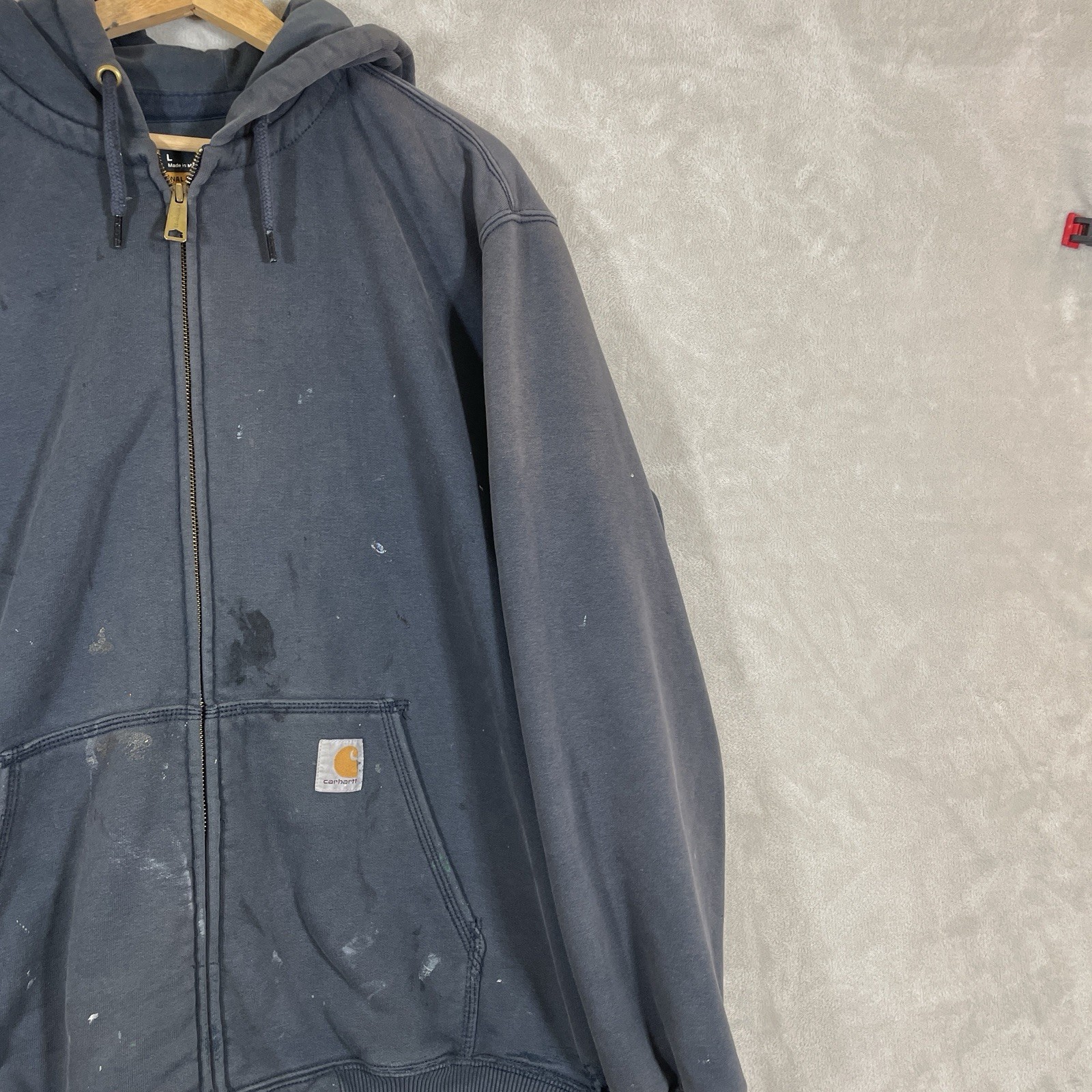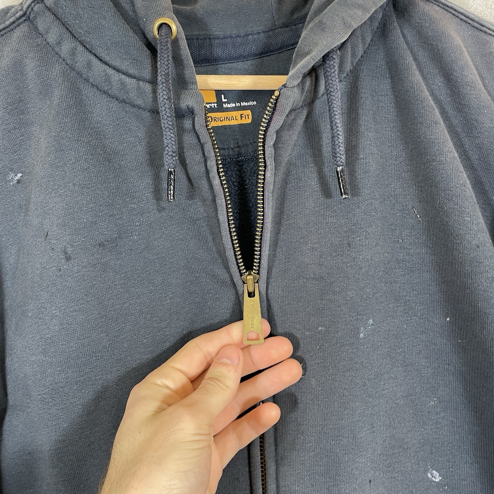 Vtg Carhartt Full-Zip Heavyweight Cotton Hoodie Sweatshirt L Paint Distress Fade