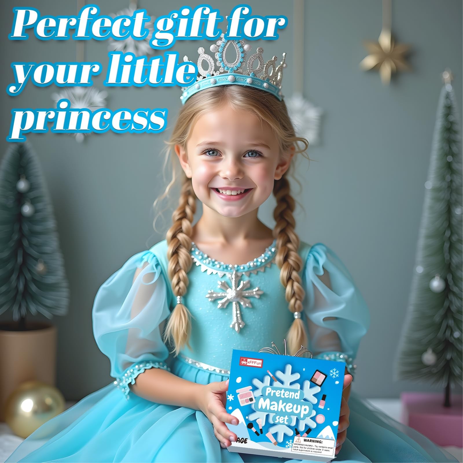Pretend Makeup Kit for Toddlers 3-5, Kids Play Set Child-Size, Blue